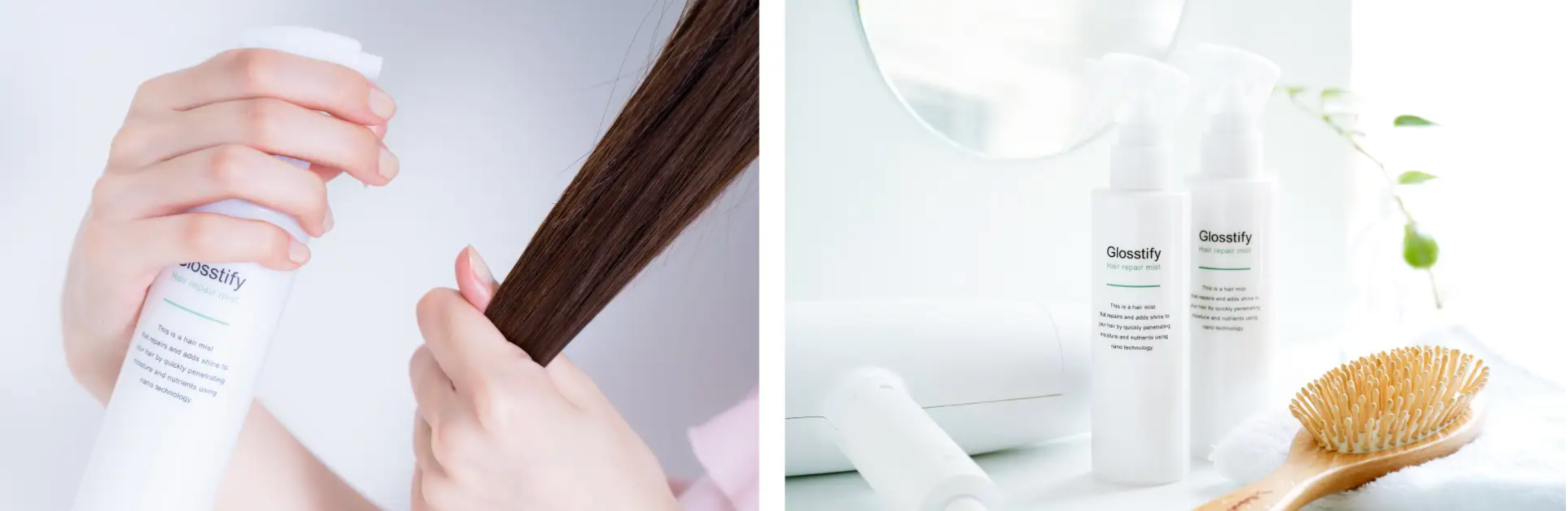 ”Glosstify”は「Rr SALON」の人気メニュー「髪質改善トリートメント」を1年かけてホームケア向けに応用したもので、これ1本でサロン級のトリートメントケアを叶えるヘアケアコスメです。