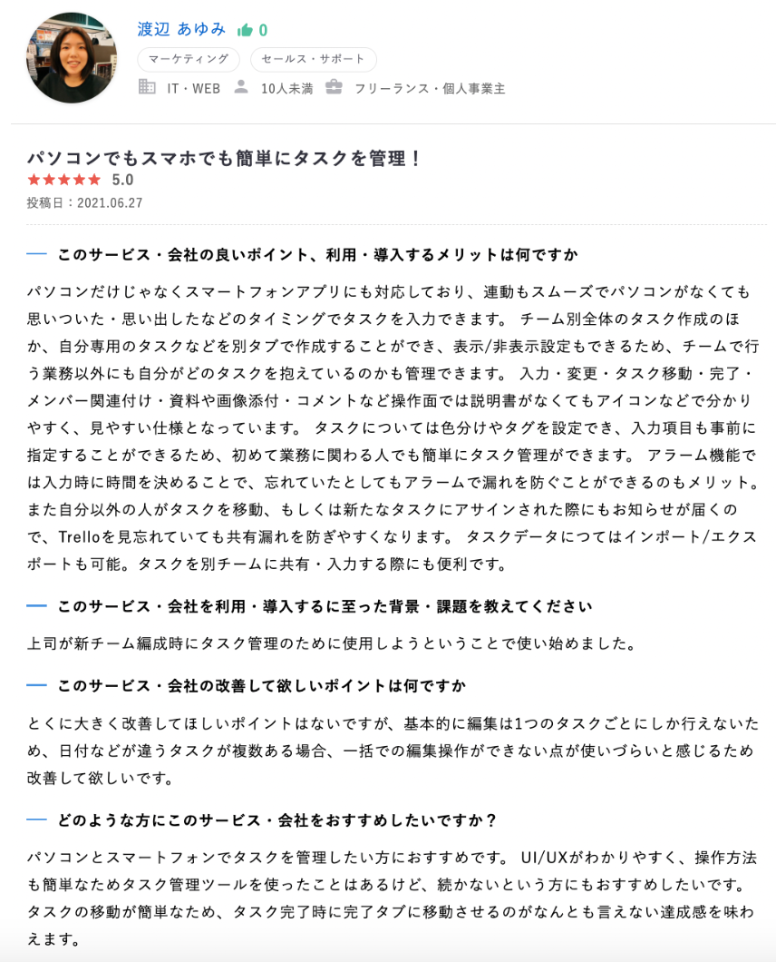 Trelloの参考になったレビュー