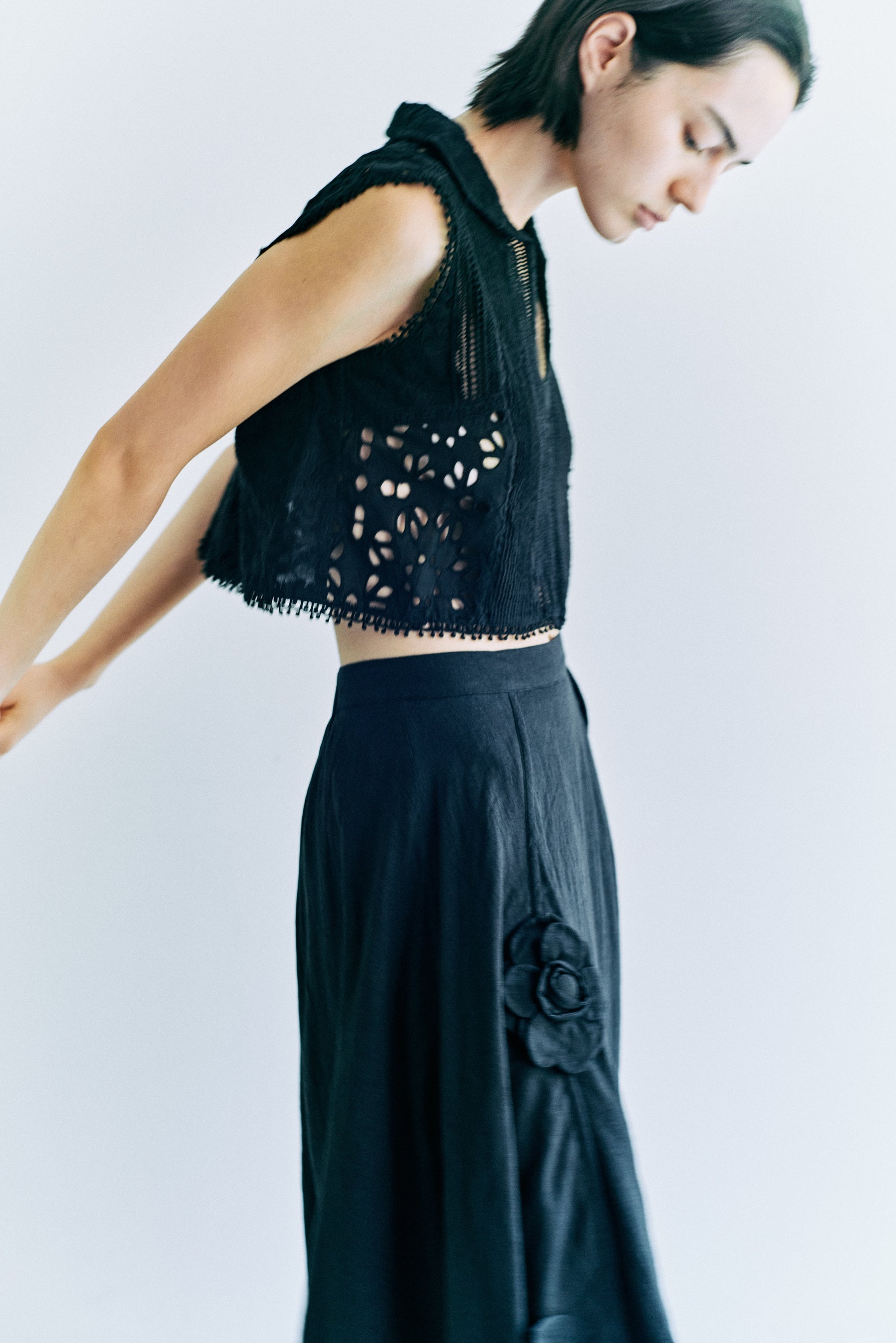 デザイナーが一点一点手作業で描くラインから生まれる繊細なデザインは、日常に凛とした空気をもたらす、心が浮き立つ服。
