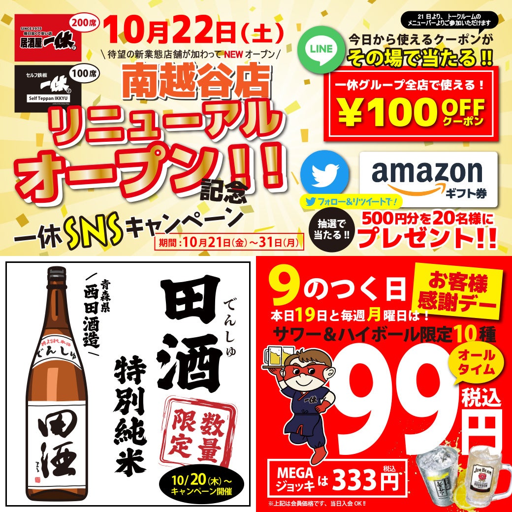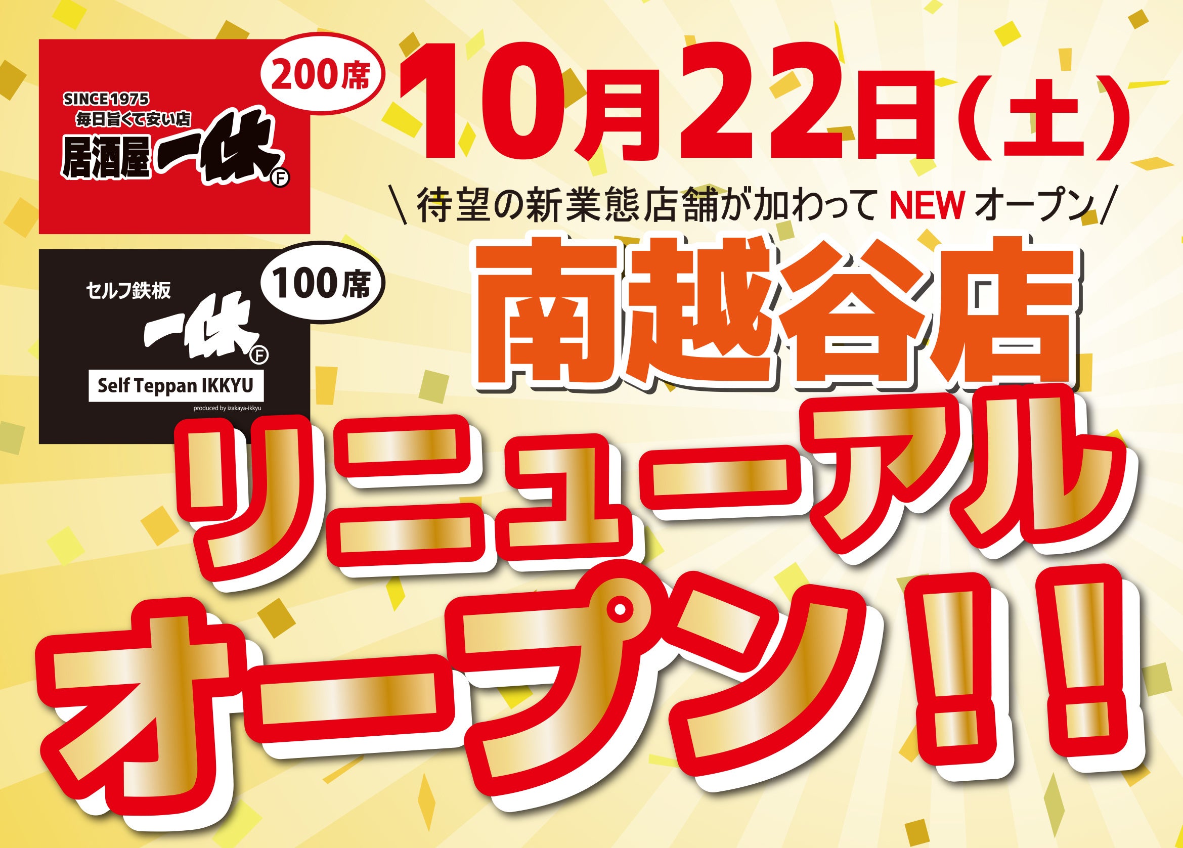 - 居酒屋一休 セルフ鉄板一休 南越谷店リニューアルオープン 概要