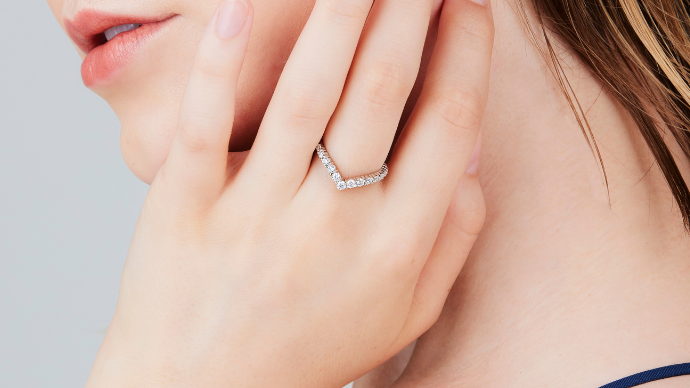 V Shape Ring【Vシェイプリング】モアサナイト計0.8ct K18WG、K18YG、K18PG、PT950共に ¥90,000(税込)