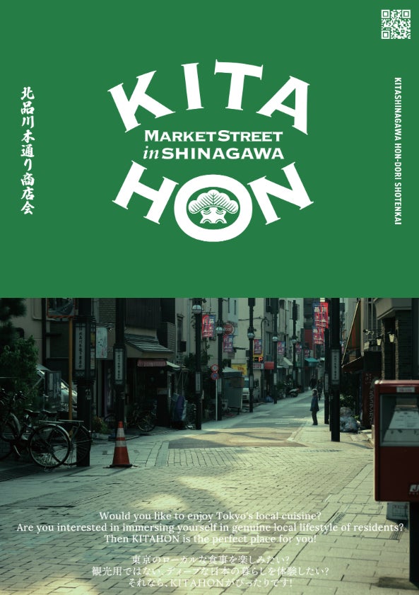 品川駅から一番近い商店街(※1)である「北品川本通り商店会」の立地を生かし、品川駅周辺のホテルにフライヤーを設置。フライヤーに記載されたQRコードを読み込むと、北品川本通り商店会の観光サイト「KITAHON」が立ち上がり、北品川本通り商店会に加盟する約40店舗の紹介文を読むことができます(※2)。お客様が実際に商店街を訪れると参画店舗には同じデザインのポスターが貼られているため、お店探しの時も簡単に見分けることができます。英語メニューの用意がない店舗にはメニュー制作も行い、来店時にも接客時に困らないように配慮しました。