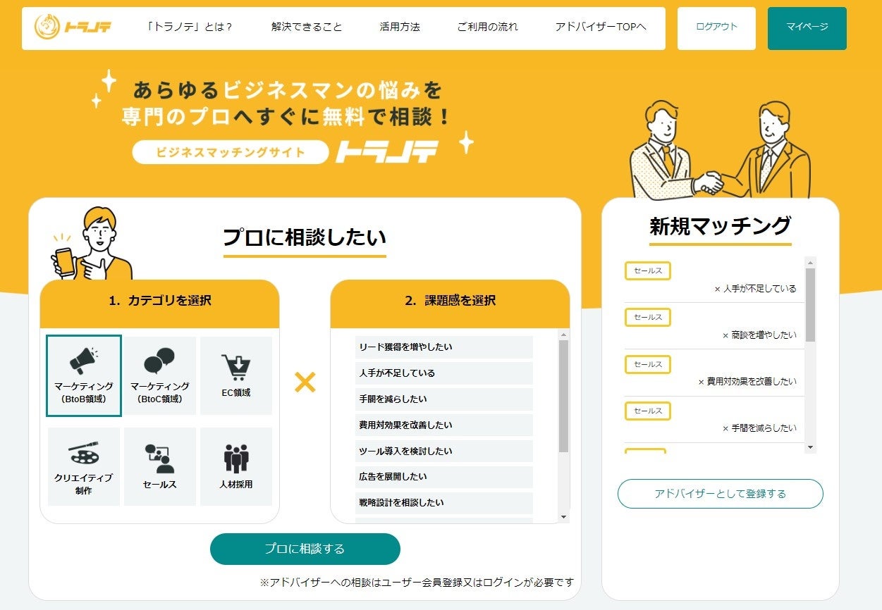 ビジネスマッチングサービス「トラノテ」のアドバイザーとして掲載されました