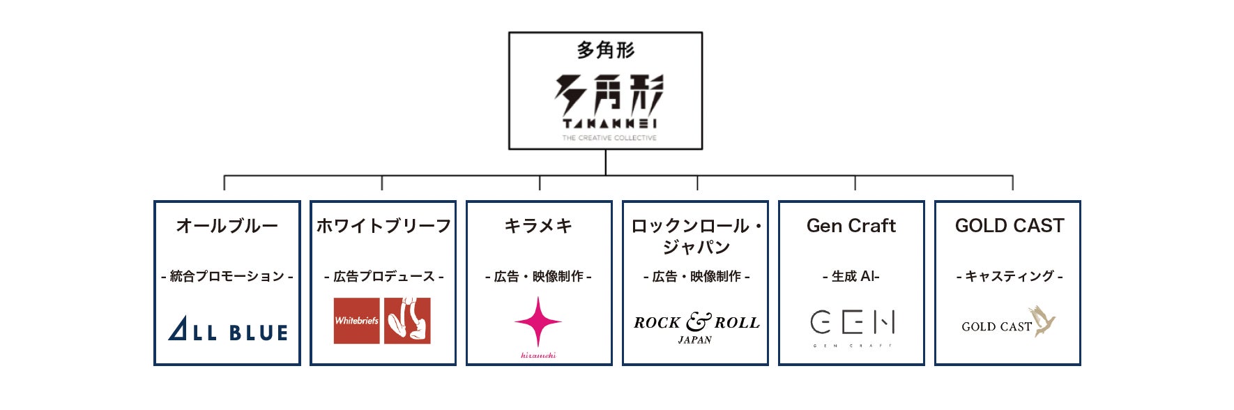 一方、多角形は、クリエイティブ分野において、際立った個性と特長を有する企業によるグループ形成を目的に設立されたホールディングス会社です。「ちがいを合わせ、すごいを創る」をコンセプトに、広告企画、映像制作、キャスティング、生成AI 等に強みを持ったグループ会社より構成されております。