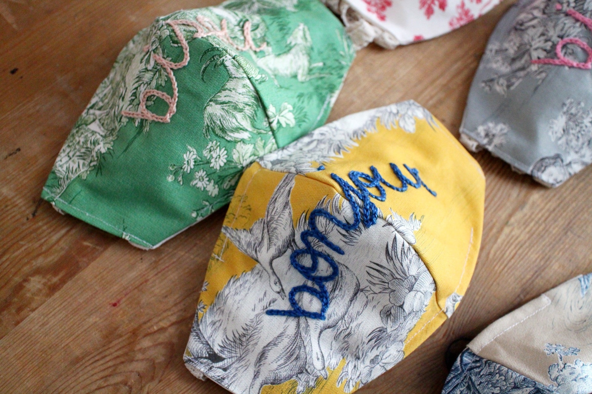 刺繍は全てチェーンステッチで施されています。立体的な刺繍の文字は機械では実現することはできず、ひと針ひと針丁寧に刺されたハンドメイドならでは。作り手の想いとぬくもりを感じさせます。