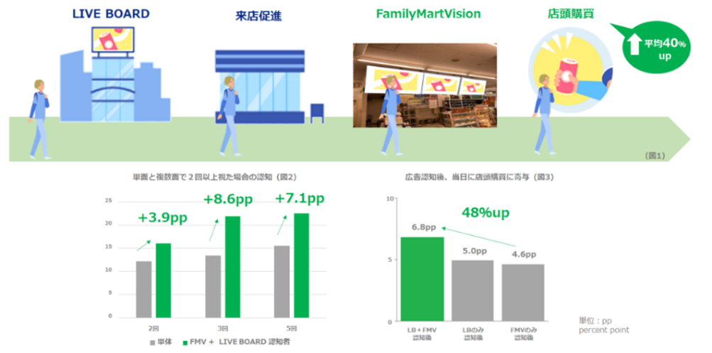 ◆FamilyMartVision × LIVE BOARDの相乗効果にて、来店率・店頭購買率が共に向上