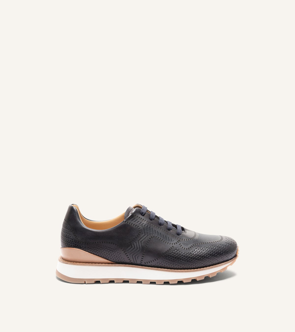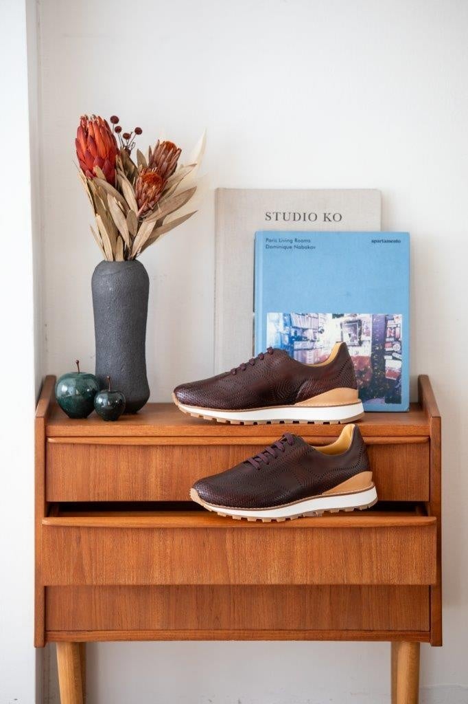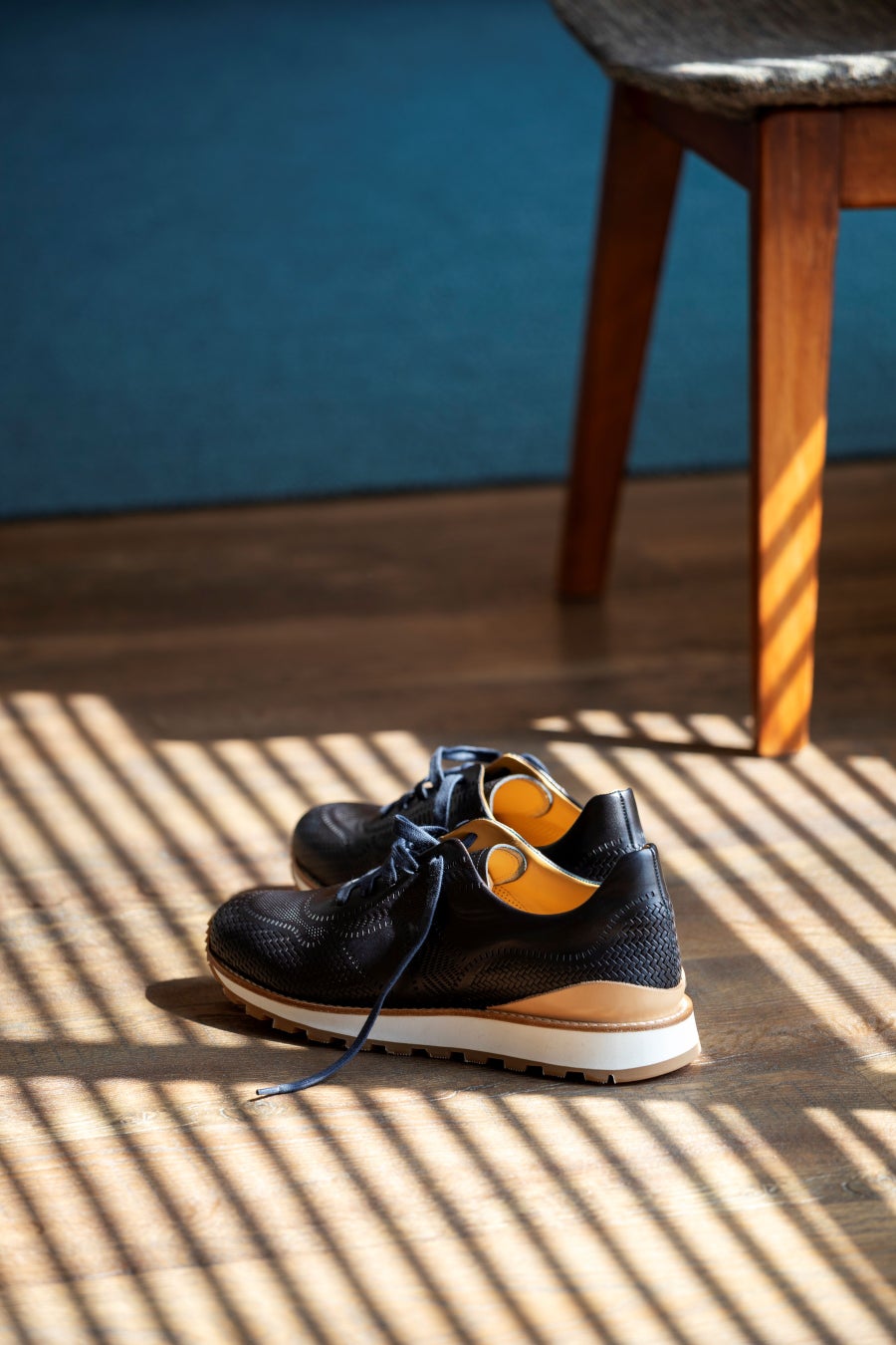 卓越した技術は、アッパーにレーザーカットを施した「モエナ スニーカー」にも応用され、カジュアル・ラグジュアリーの領域へとその可能性を広げています。これはテストーニが絶え間なく挑戦を続けていることの証です。最先端のレーザーテクノロジーを駆使したこのアイコニックなスニーカーは、足を優しく包み込む柔らかさと、耐久性を両立させたアッパーが特長です。