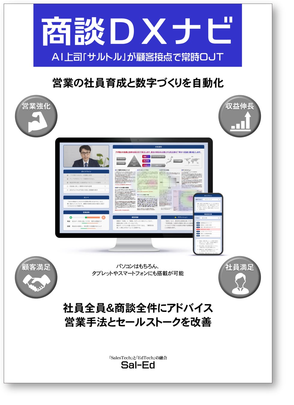 サルエドが「商談DXナビ」を提供、営業の社員育成と数字づくりを自動化。トップセールスAIが講師や上司に代わって一人ひとりに張りつき、顧客接点で常時OJT