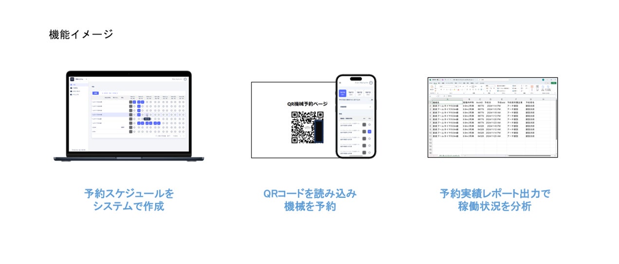 さらに、機械の安全管理をデジタル化する「Arch安全セーフティ」(後述)で使用するQRコードと連携しており、機械に貼付されたQRコードを読み込むことでも、予約や確認がその場でできます。