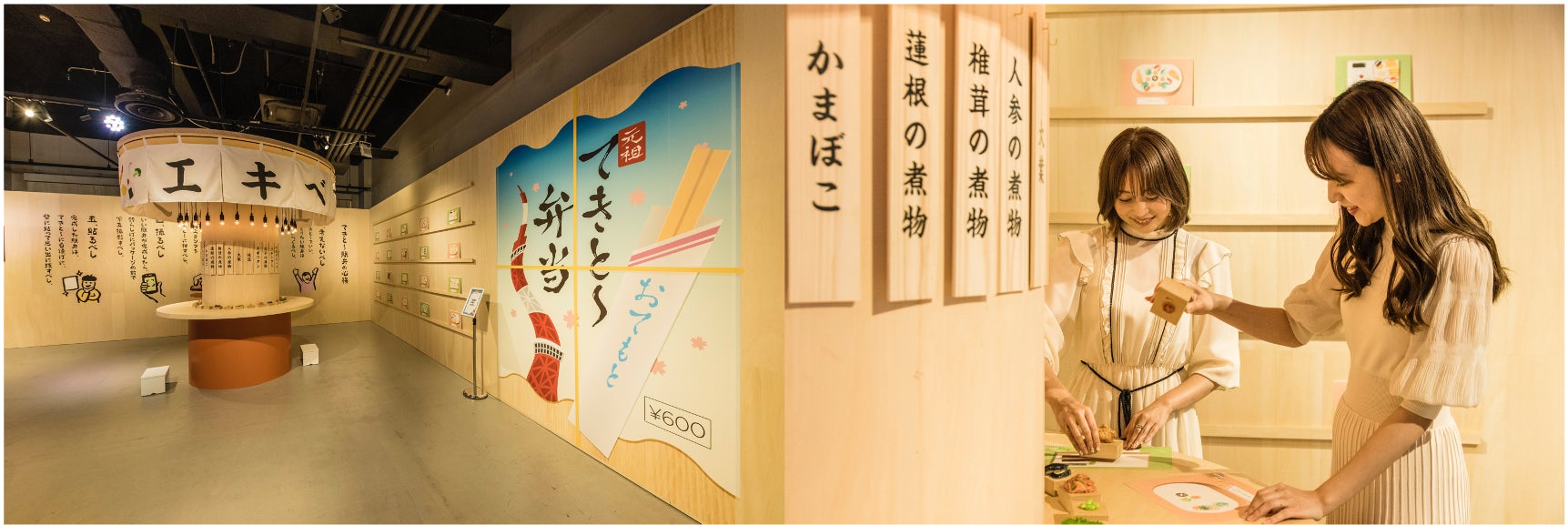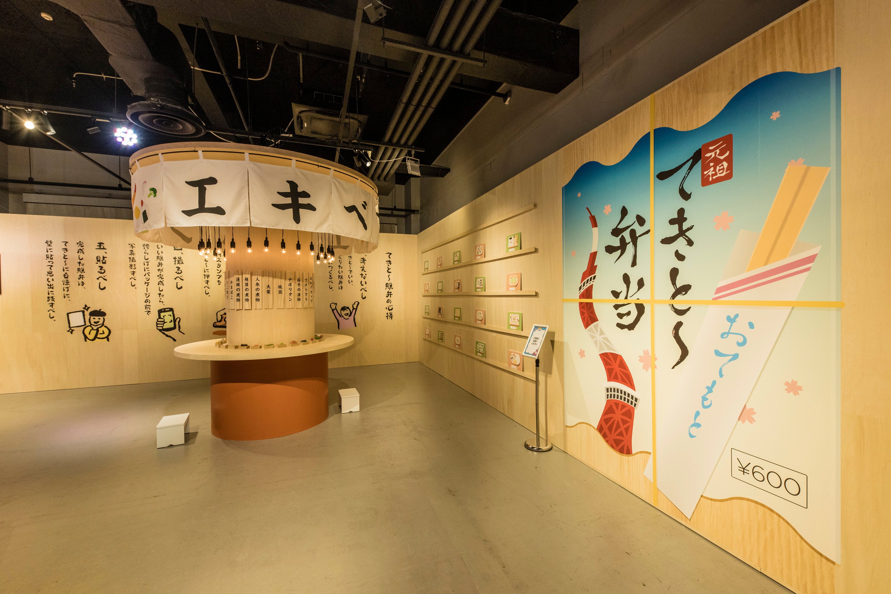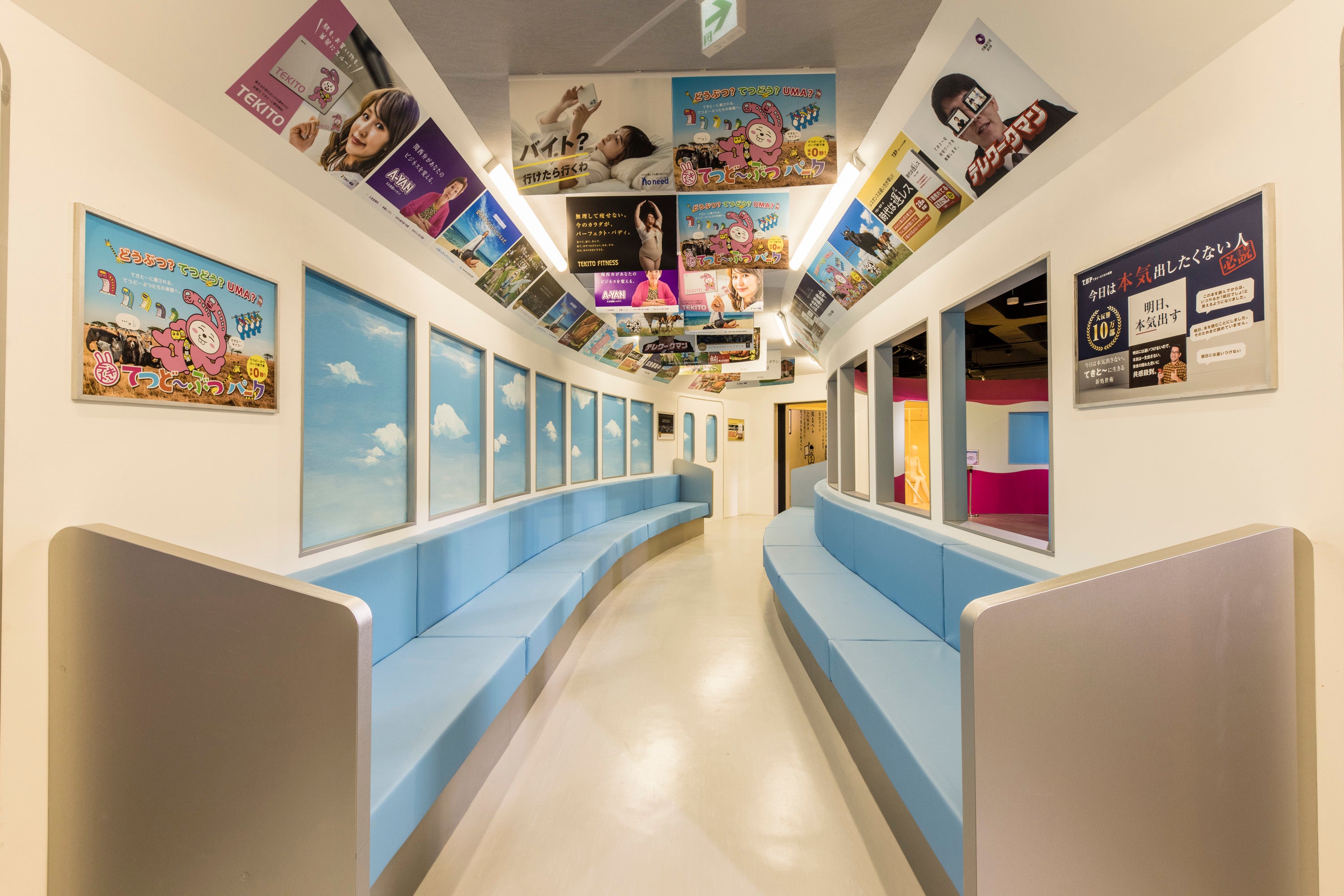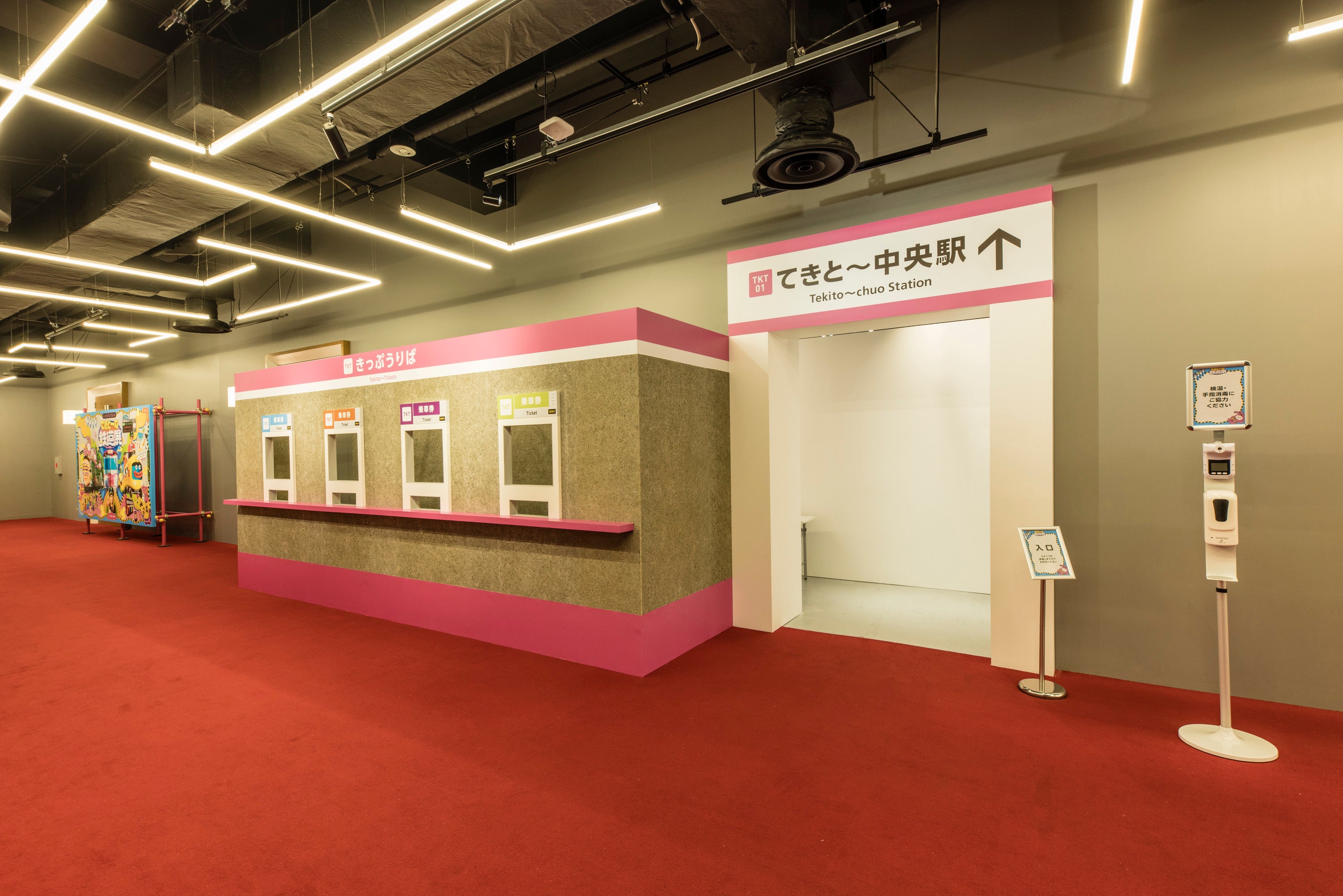 てきと〜な切符を受け取ってほぼ自動改札から入場すると、約1,000㎡もの敷地内には、“てきと〜"を楽しめるよう創られたコンテンツが詰め込まれています。来場者は、全長42.5mにもなる「てきと~線」というぐにゃぐにゃの車両から、「てきと〜中央駅」、「エキベン・タウン駅」、「メチャコミ・スクエア駅」、「てつど〜ぶつパーク駅」、そして「ゲーム・ステーション駅」という主に5つの「てきと~」で楽しい駅(エリア)を各々下車しながら、体験型展示を楽しみます。