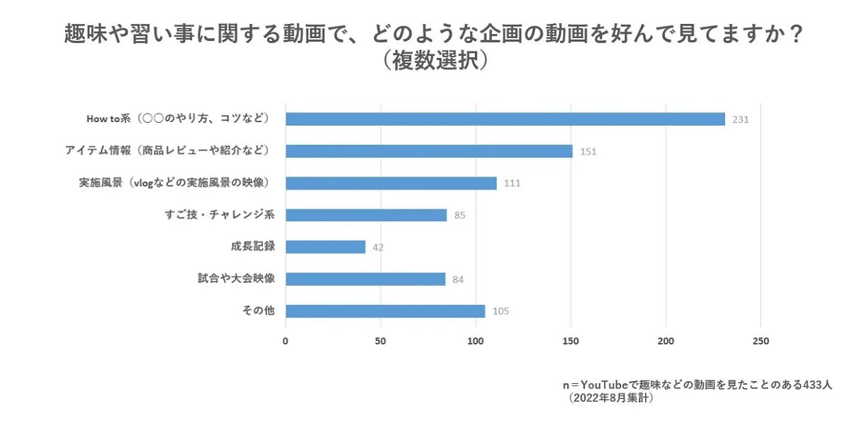 - 趣味系動画で人気のある企画1位はHow to系、2位はアイテム紹介