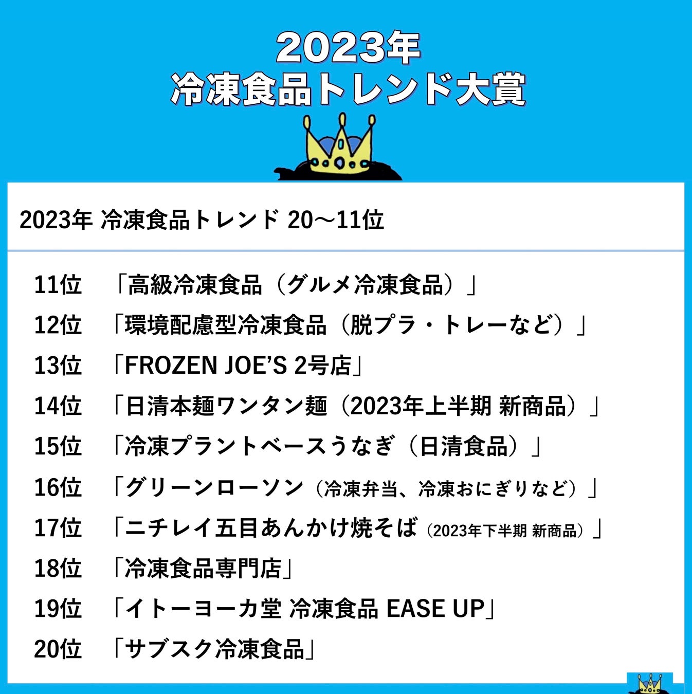 「冷凍食品トレンド大賞2023」大賞は『冷凍食品値上げ』。業界関係者が選ぶ今年の冷食トレンドランキングを発表!