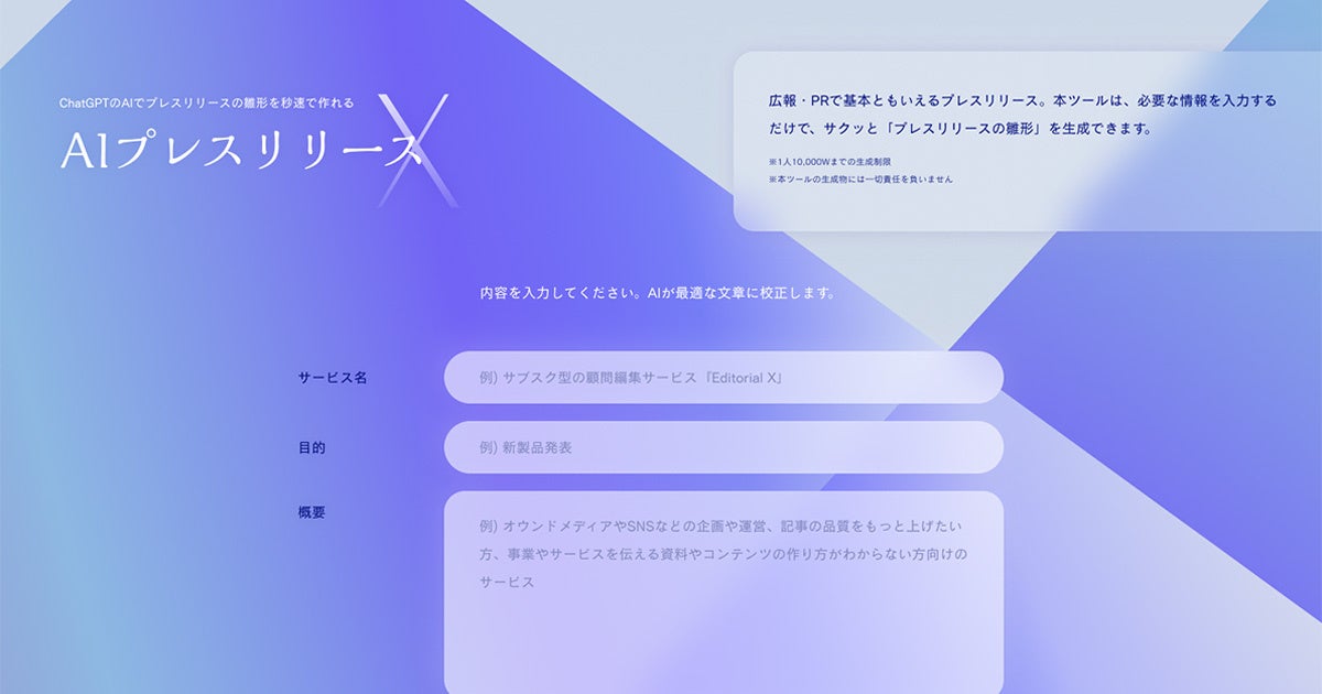 生成AIでプレスリリースの雛形を秒速で作れる、生成AIツール「AIプレスリリースX」を公開