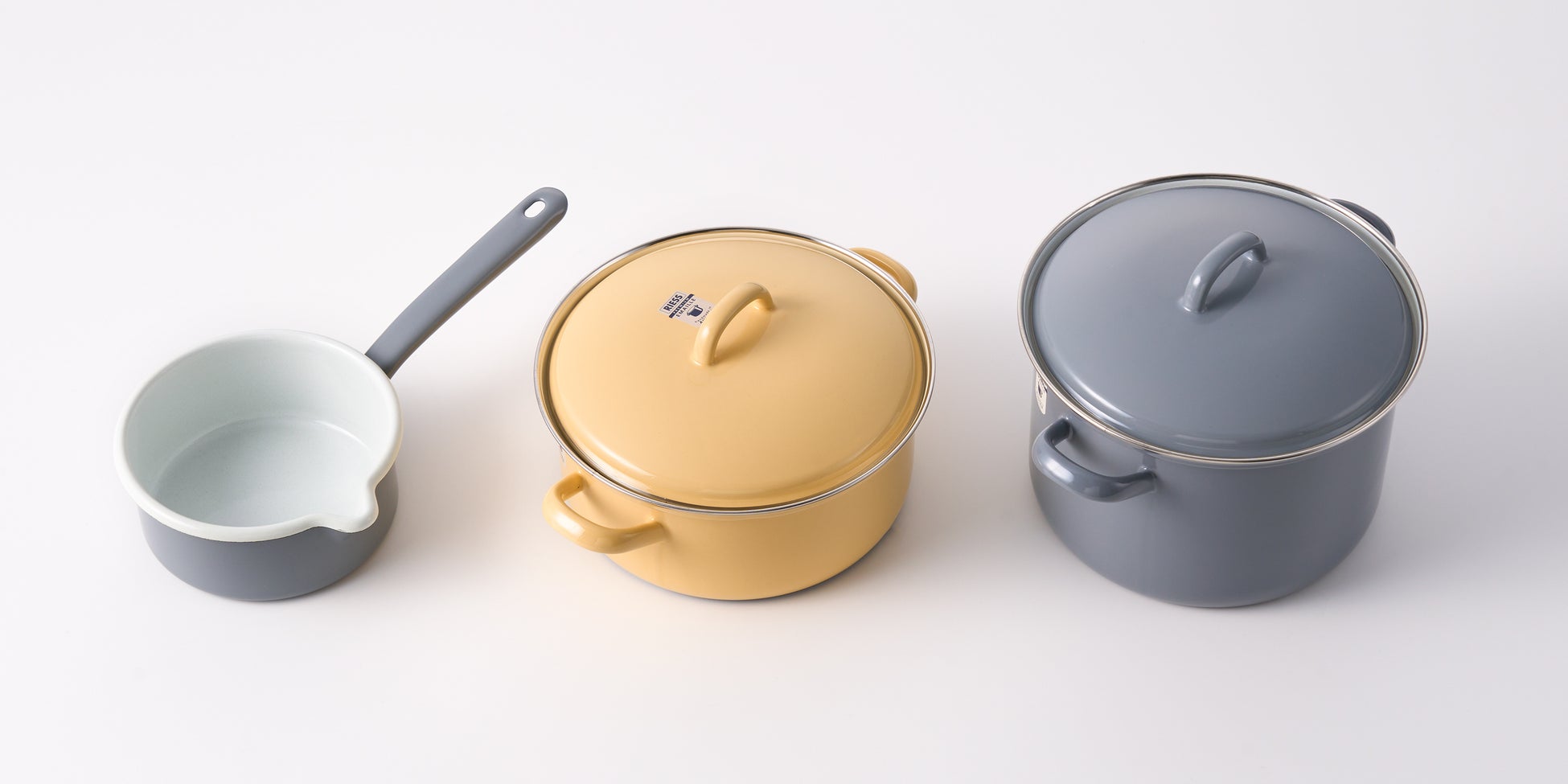 ホーローは、鉄の表面にガラスをまとわせ、850℃の炉で強固に結合させた素材を指します。リース社では、「健康的な調理器具」を製造することを信念に、このホーロー素材を用いた鍋やキッチン用品を提供し続けています。また、美しい発色も、ホーロー素材の特徴の一つです。ガラスに載せたカラフルなツヤと輝きは、一つあるだけでキッチンに明るい彩りを添えてくれます。お手入れ次第では、何十年も変わらず美しい光沢を保ち、長く愛用いただくことが可能です。