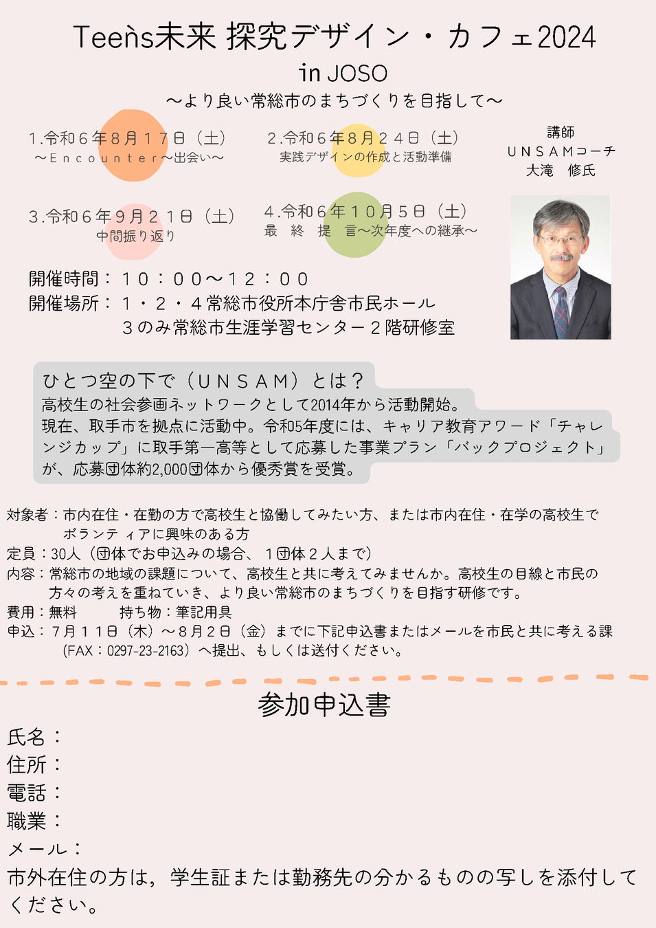 「Teen′s未来探求デザイン・カフェ2024 in JOSO」~より良い常総市のまちづくりを目指して~