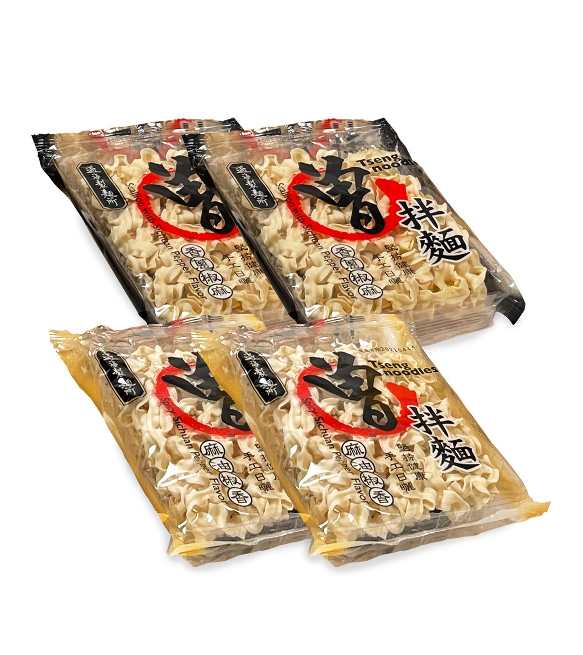 麻辣山椒風味と麻辣胡麻風味、それぞれ2食ずつを一つのセット商品として販売します。また、初めてのお客様にとってお求めやすいよう、通常の4食入り商品に比べてお安くしております。