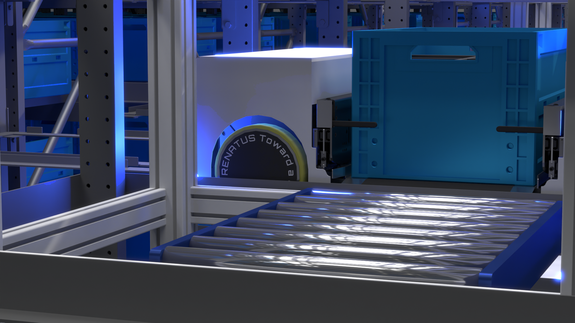 RENATUS ROBOTICS Inc.が開発する超高効率の自動倉庫システム「RENATUS」は、倉庫内に建てられた高さ5~30mのラック内において、ラックに敷設されたレール上を専用シャトル「RENATUS SHUTTLE」が走行することでコンテナを効率的に作業者の元へと運ぶ次世代のGTP(*1)です。