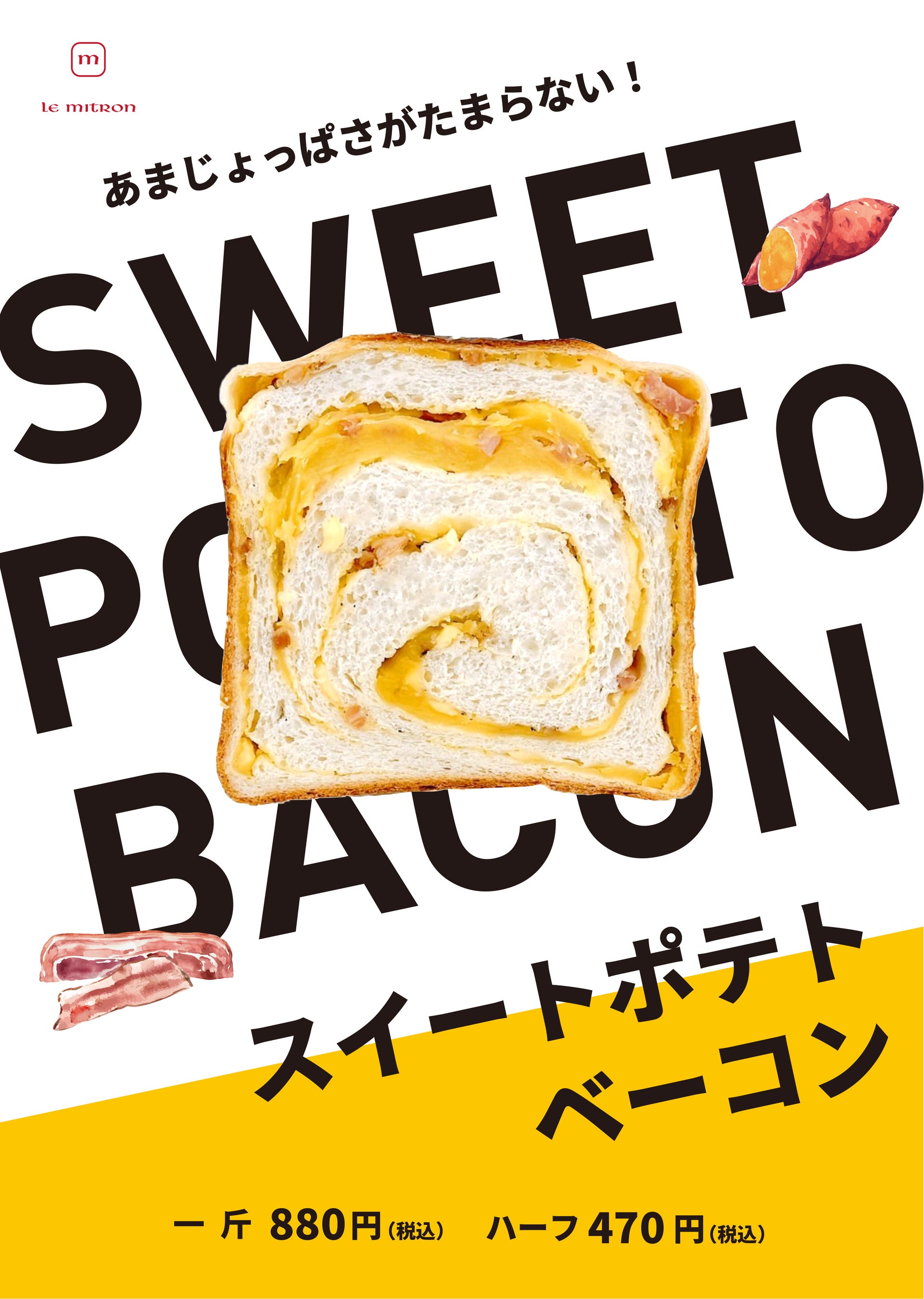 【ル・ミトロン食パン 9月の新商品】秋の味覚『スイートポテトベーコン食パン』を全店で発売!
