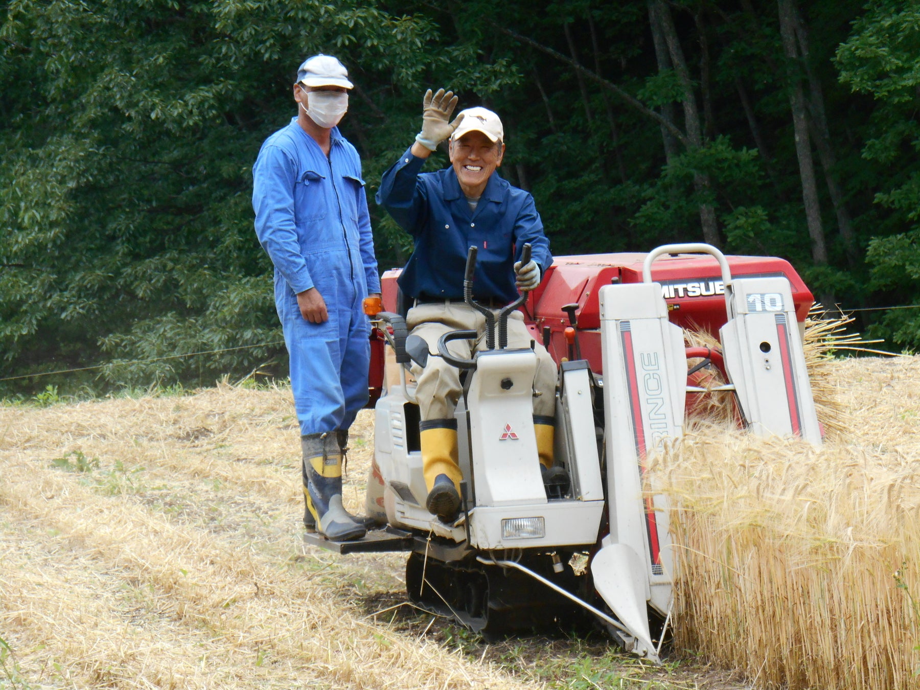 青ヶ島焼酎ともち麦のコラボのきっかけは、青ヶ島から細山義則さんが岡山県高梁市(宇治町)に移住したことに始まります。宇治町では、地元住民が耕作放棄地の対策に取り組もうと、「宇治雑穀研究会」を立ち上げ、もち麦の栽培を行っていました。