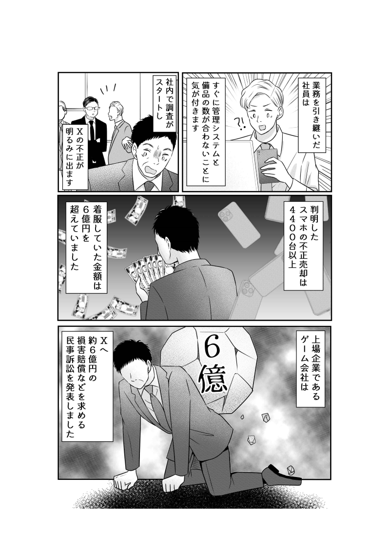まんがでわかりやすく、短時間でコンプライアンス事件を起こすことの末路を伝えることができます。
