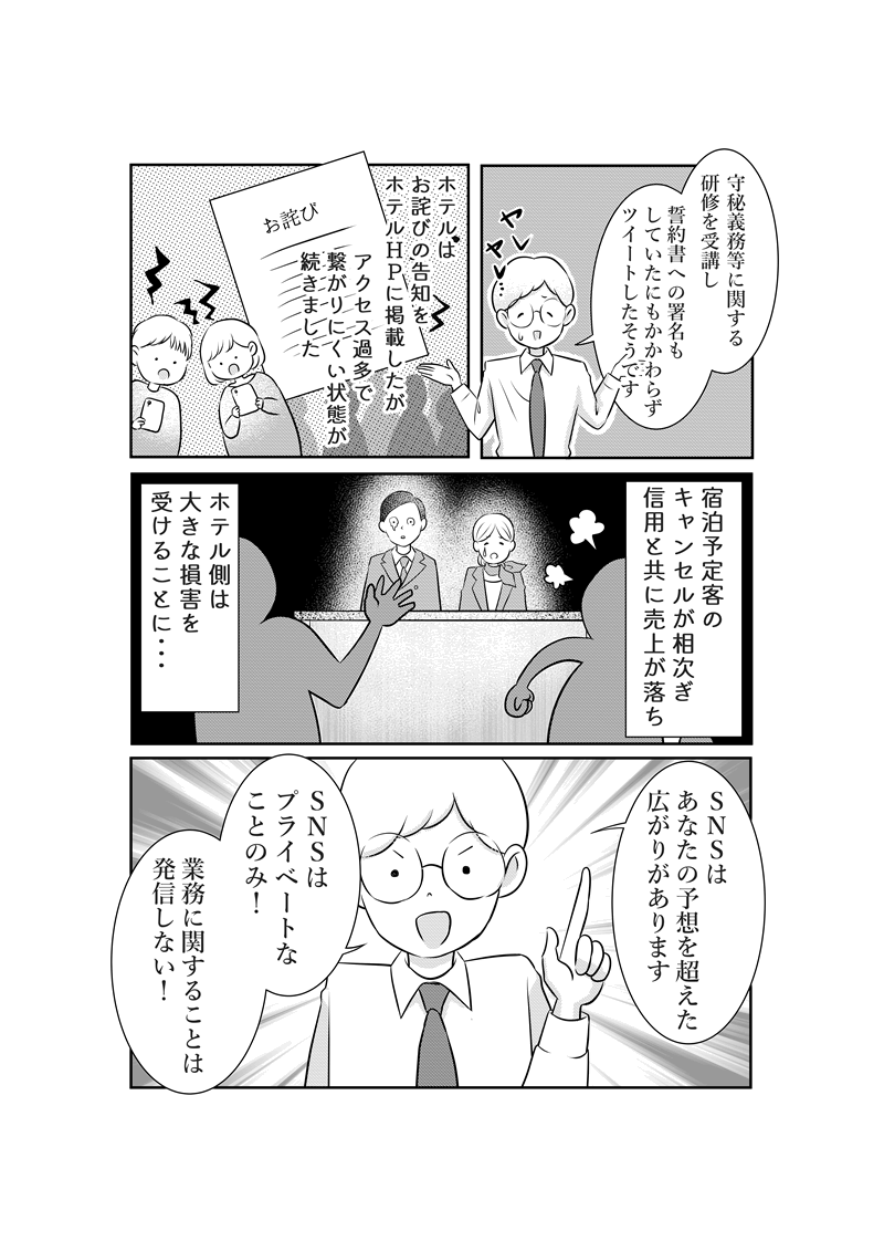 スタッフ間での個人情報の暴露を注意喚起する狙いがあります