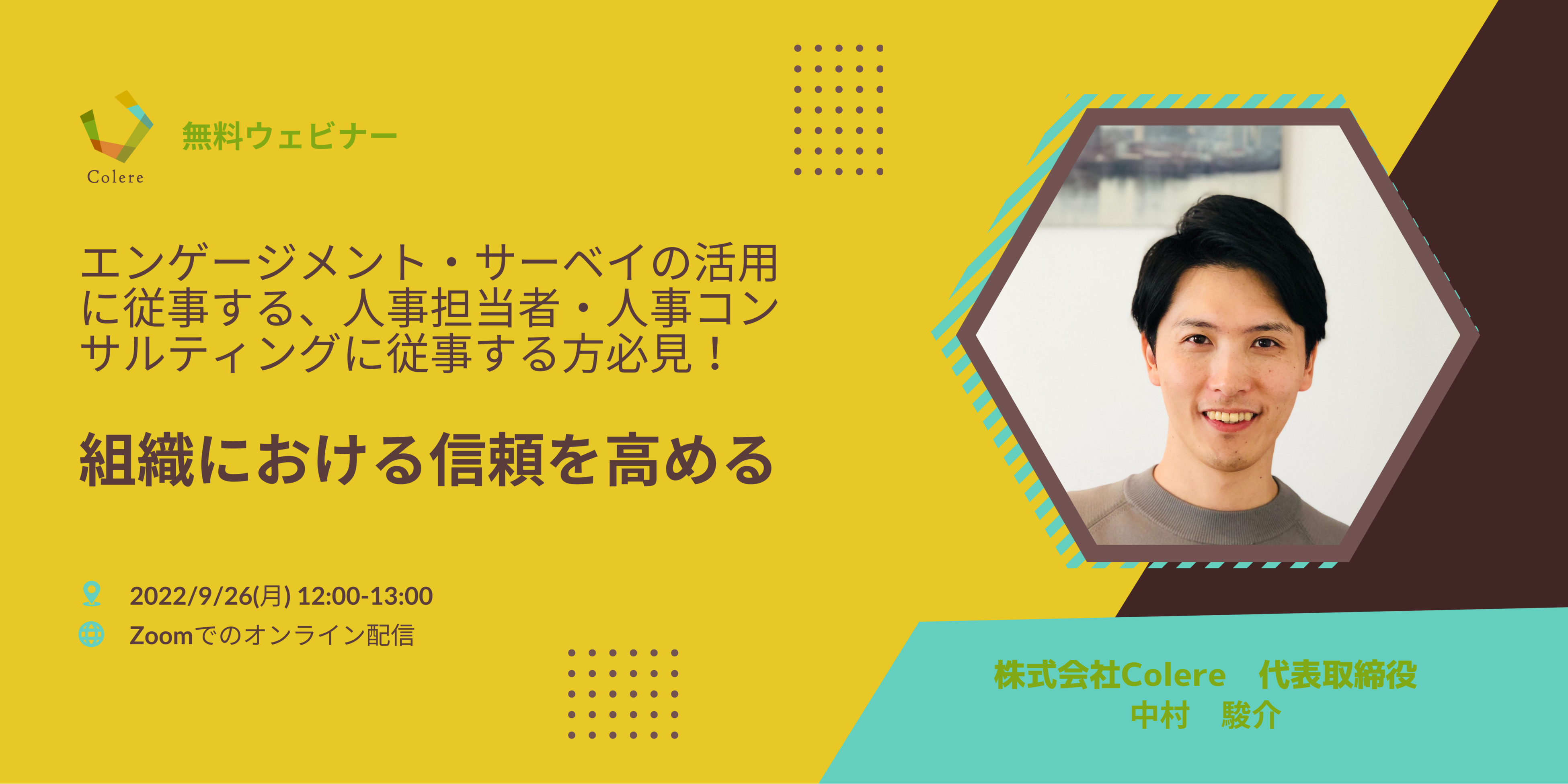 【9/26(月)12時 無料ウェビナー】組織における信頼を高める〜エンゲージメント・サーベイの活用に従事する、人事担当者・人事コンサルティングに従事する方必見!〜