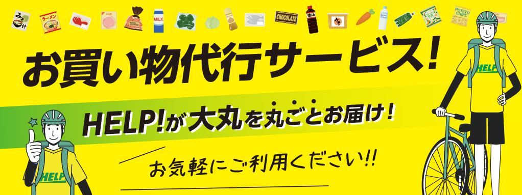 大丸梅田店の地下2FにHELP!カウンターを設置しておりますので、お客様が購入した商品をお持ちいただければ、「HELP!」がご自宅やご指定の場所までお届けします。