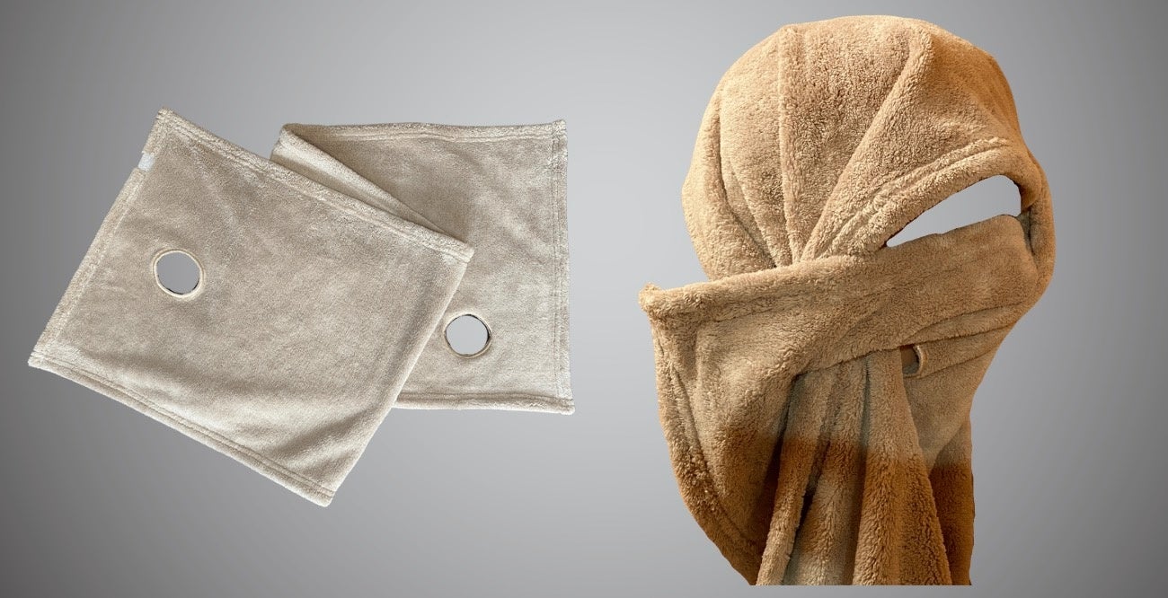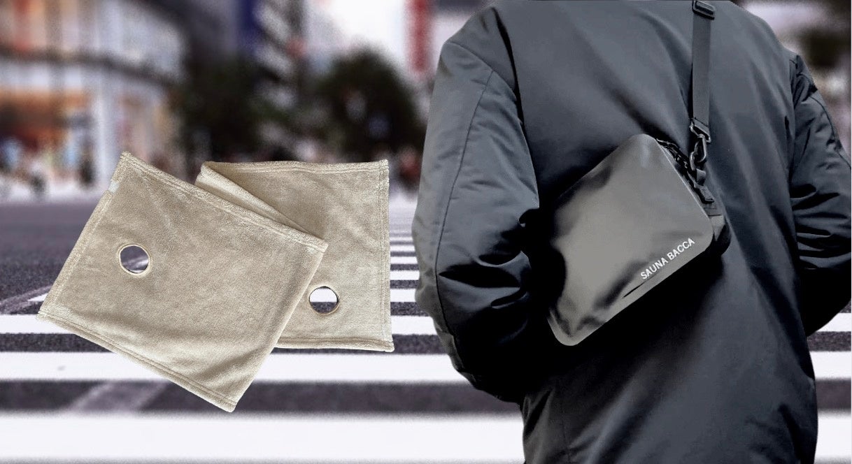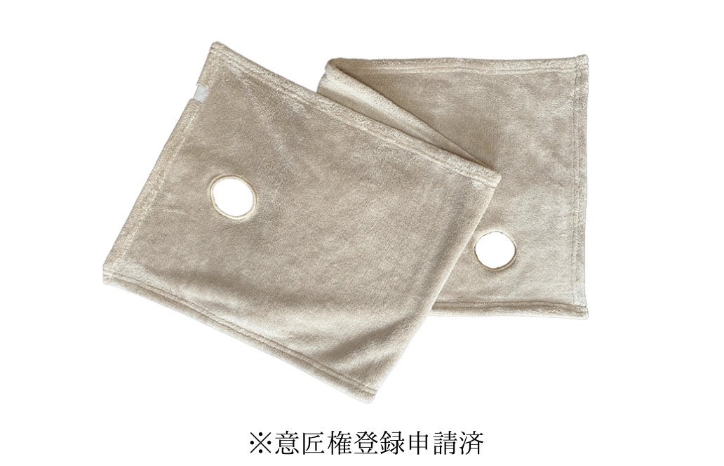 タオルに空いた2つの穴が最大の特徴(意匠権登録申請済み)2つの穴に通すことによりサウナハット、サウナマスク、バンダナ、マフラー、枕などに様々変化。2つの穴が非対称の為様々なサイズに調整可能。もう一つの特徴の吸水性(第三者機関に調査を依頼、実証済み)により濡れた状態でも体が拭けて、バスタオルが要りません。サウナに入る前も中でもしっかり汗を拭けて、周りの人に迷惑をかけません。さらに【濡れたタオルをそのまま入る専用防水スパバッグ】もあれば汚れる事がありません。