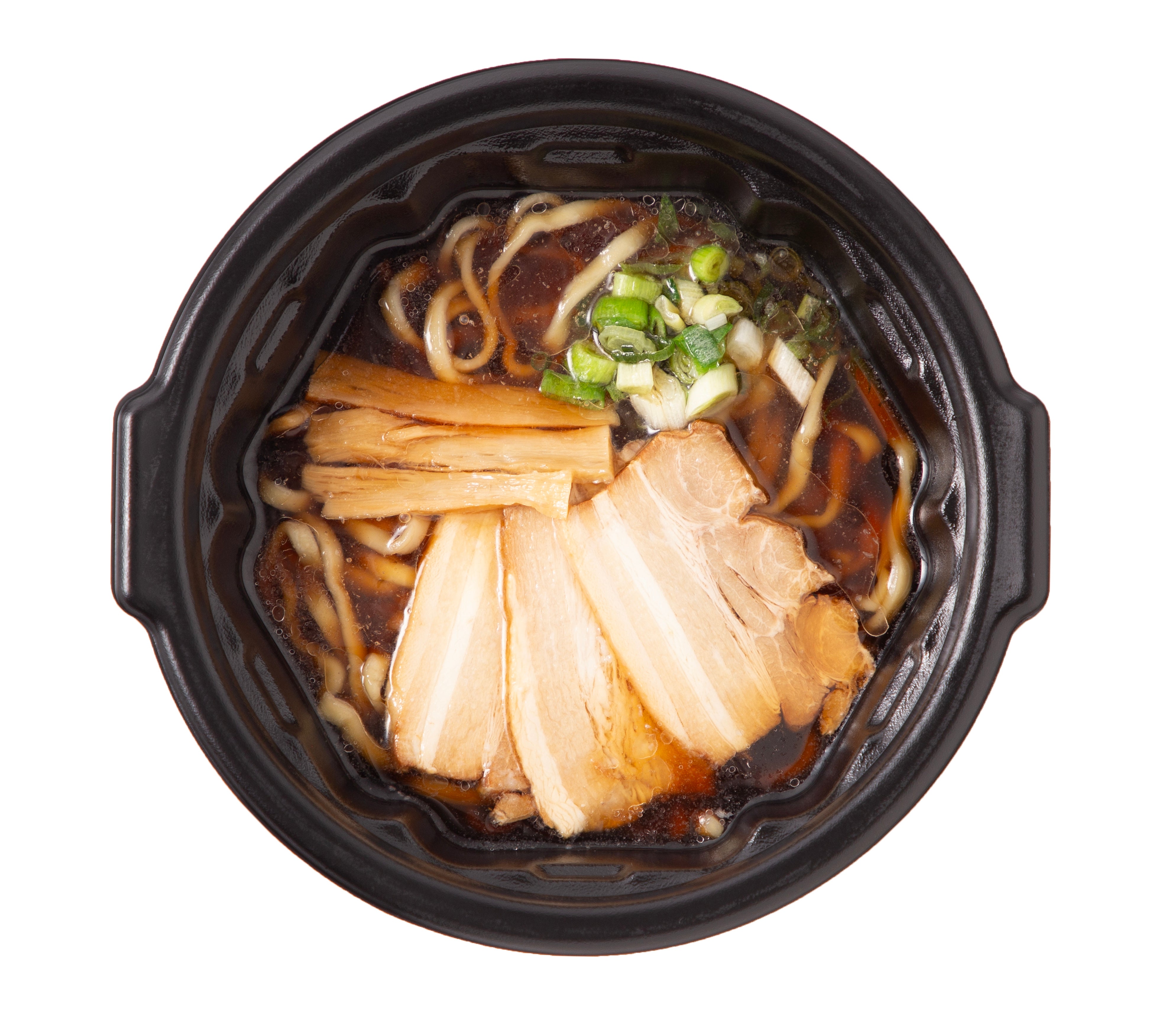 『喜多方 Shoyu』は、福島県喜多方市のご当地ラーメンを再現しました。特徴である濃い醤油ベースの味の中に、煮干しを主とした魚介の香りを感じられる風味豊かなスープです。太めのちぢれ多加水麺はスープに絡み、なめらかで食べ応えのある食感を楽しめます。具材はシンプルに、チャーシュー、メンマ、ネギとしました。