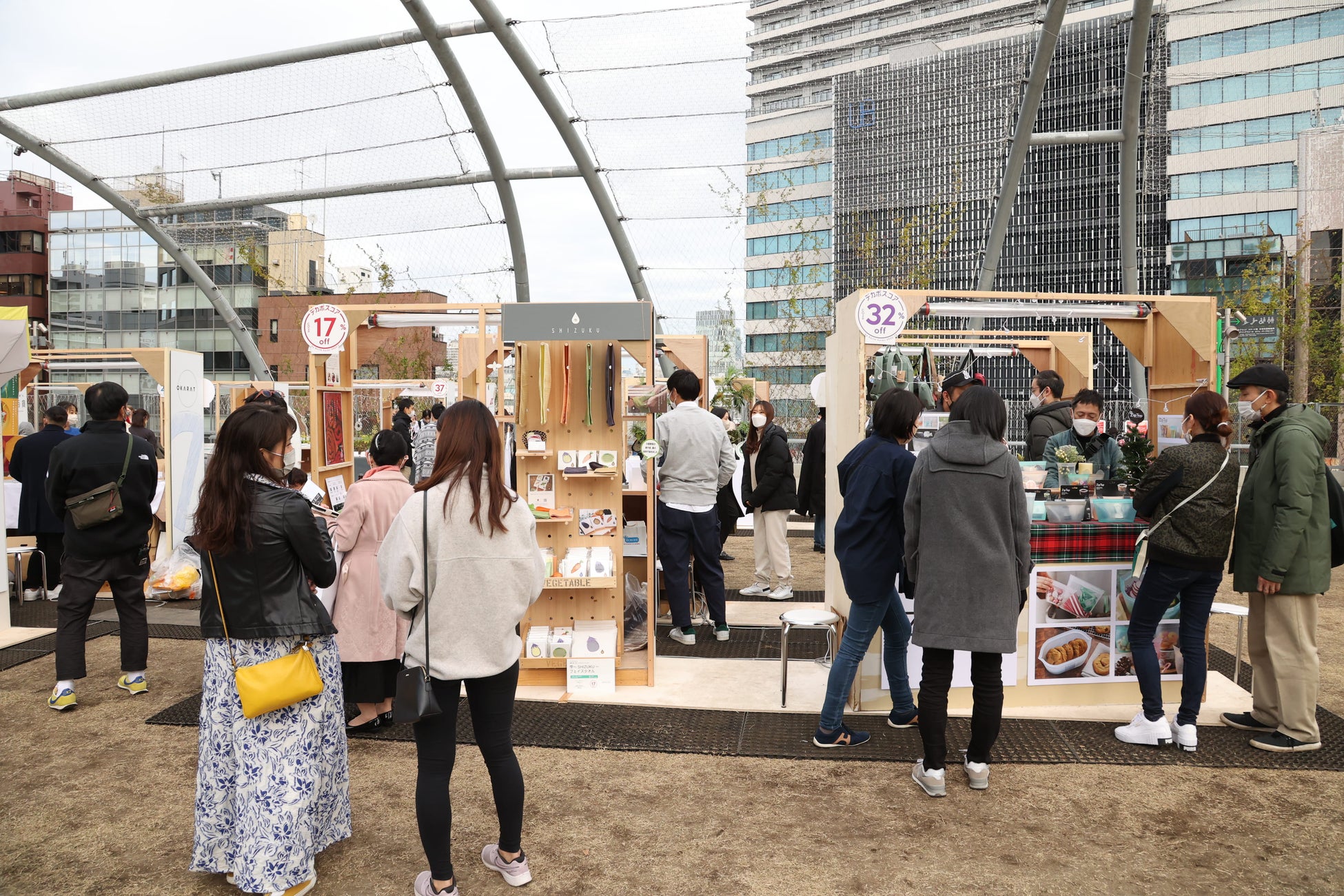 また、同日に渋谷区立宮下公園 芝生広場(ミヤシタパーク屋上)にて、デカボ(脱炭素)な商品を手にとって、実際に買える「第2回 Earth hacks マルシェ」を開催いたしました。