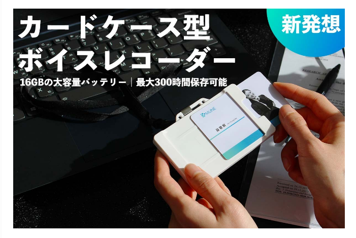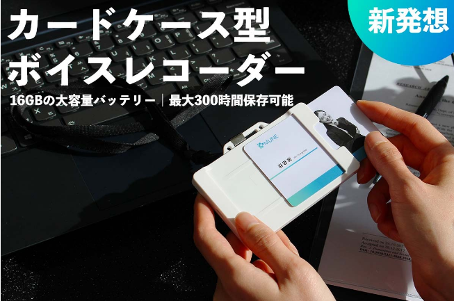 本アイテムは、社員証やICカードも入れることができ、長時間録音も可能な次世代カードケース型ボイスレコーダーです。