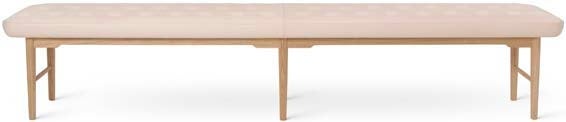 Foyerシリーズは、ベンチ、ソファ、ラウンジチェアで構成され、オーク材のフレームと、まるで空間に浮かんだような布張りの座面や背もたれの個性的な組み合わせが特徴的です。張地は、ファブリックまたは丹念に仕上げられてたレザーから選択可能です。手作りのボタンを配した座面と背もたれを張る際には、手間のかかる精密な職人技が求められます。ソファと椅子のアームレストと脚は、3つの部品を組み立てたもので、継ぎ目が目立たないよう細心の注意が払われ、手作業で磨かれています。軽快で華奢な彫刻のような印象でありながら、デザインの中核を成すのはソフトな座面と背もたれであり、快適さは全く損なわれていません。