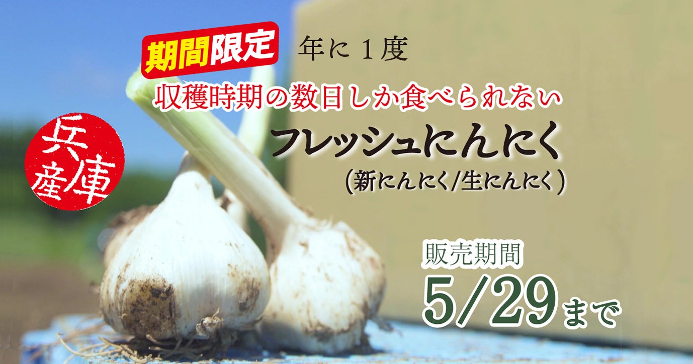 兵庫県養父市で生産するナカバヤシの“やぶひこ フレッシュにんにく”を、2023年5月29日までの期間限定で、販売予約受付を行います。(発送は6月1日以降。※収穫状況によって、お届け日が前後する可能性があります。予めご了承ください。)