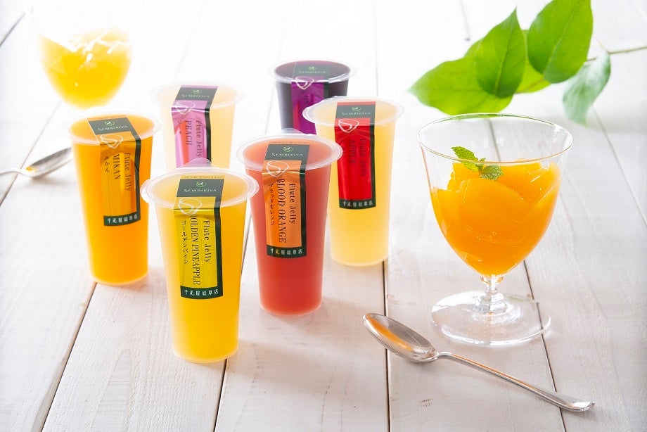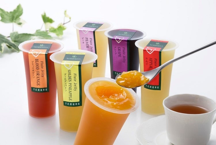 フルート型の容器に入った彩り可愛らしいジェリーです。どのお味も濃縮された果汁をたっぷりと使用した、果物の含有量が高い濃厚なお味になっております。りんご、みかん、グレープ、ピーチ、ブラッドオレンジ、ゴールデンパインの6種類ございます。
