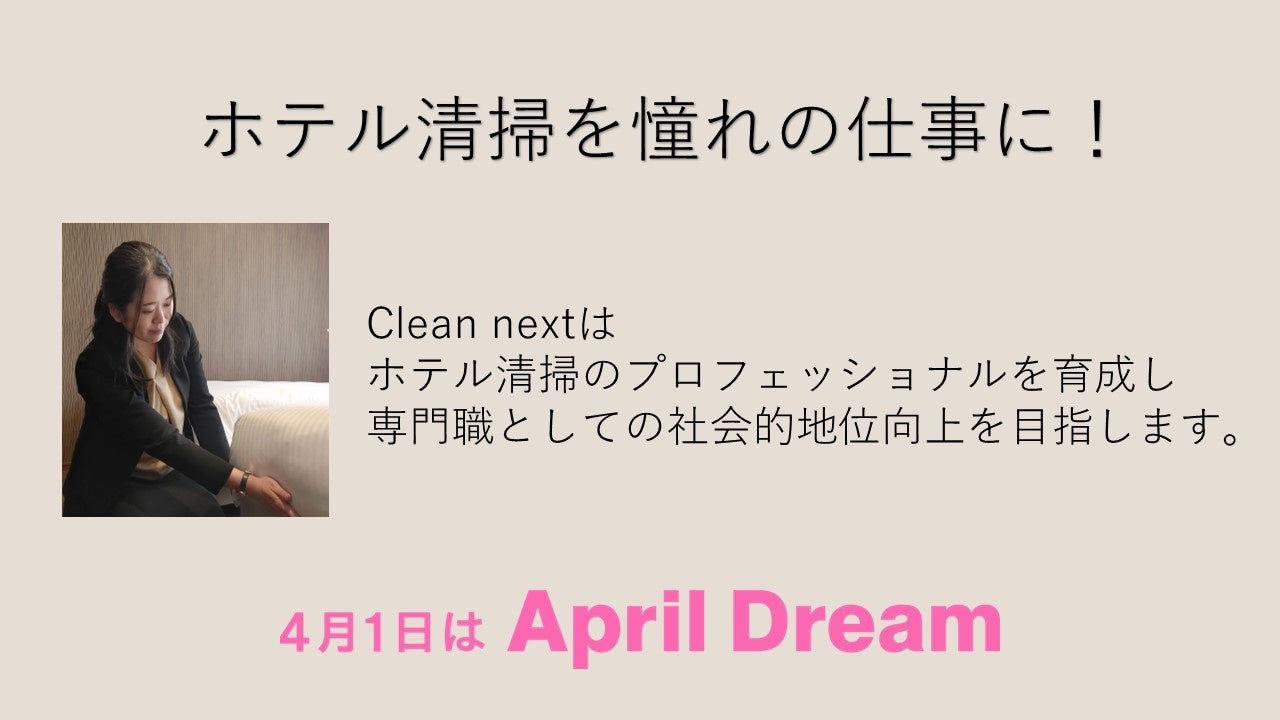 「ホテル清掃を憧れの仕事に!」このメッセージは、代表である西山自身が小学生の時から変わることなく抱いている「ホテル清掃=かっこいい」という職業への想いに起源します。また、誰よりもホテル清掃という仕事をカッコいいと思い、憧れから実務経験を経て、起業した代表西山だからこそ発信できるメッセージです。