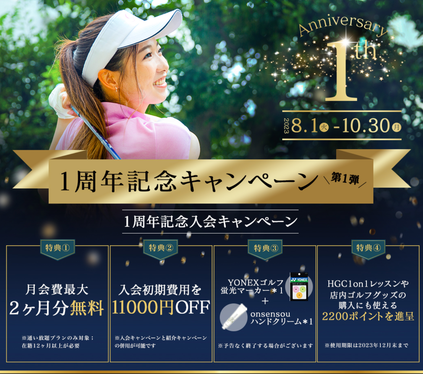 特典④ HGC1on1レッスンや店内ゴルフグッズの購入にも使える2200ポイントを進呈※3