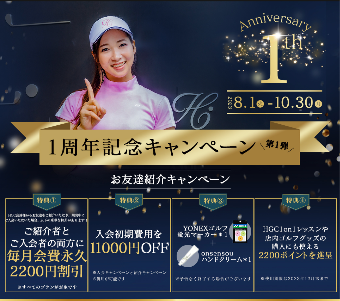 HGC会員様からお友達をご紹介いただき、期間中にご入会いただいた場合、以下の豪華な特典があります!