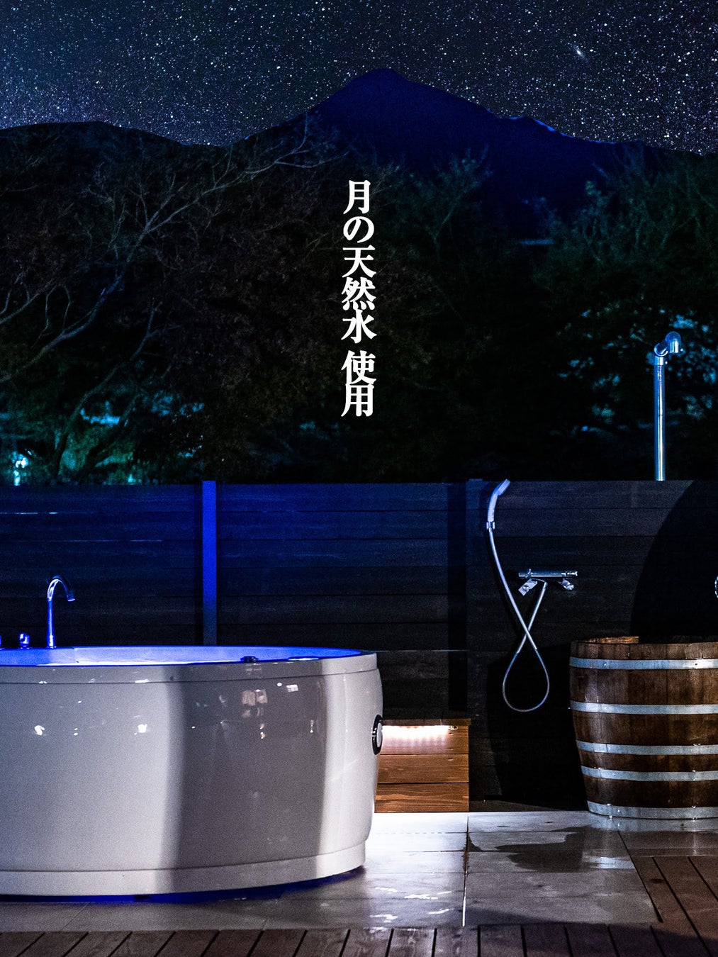 サウナから出ると目の前に広がる大迫力の地球。月の天然水を使ったジャグジーは美肌効果抜群です。サウナで整った後は、静寂の月面で焚き火を囲み、膨らむ話しに気がつけば"地球"が昇っていることでしょう。