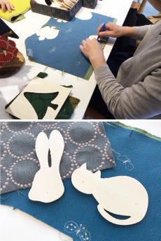 家具に張ったminä perhonenのテキスタイルの余り布で作る