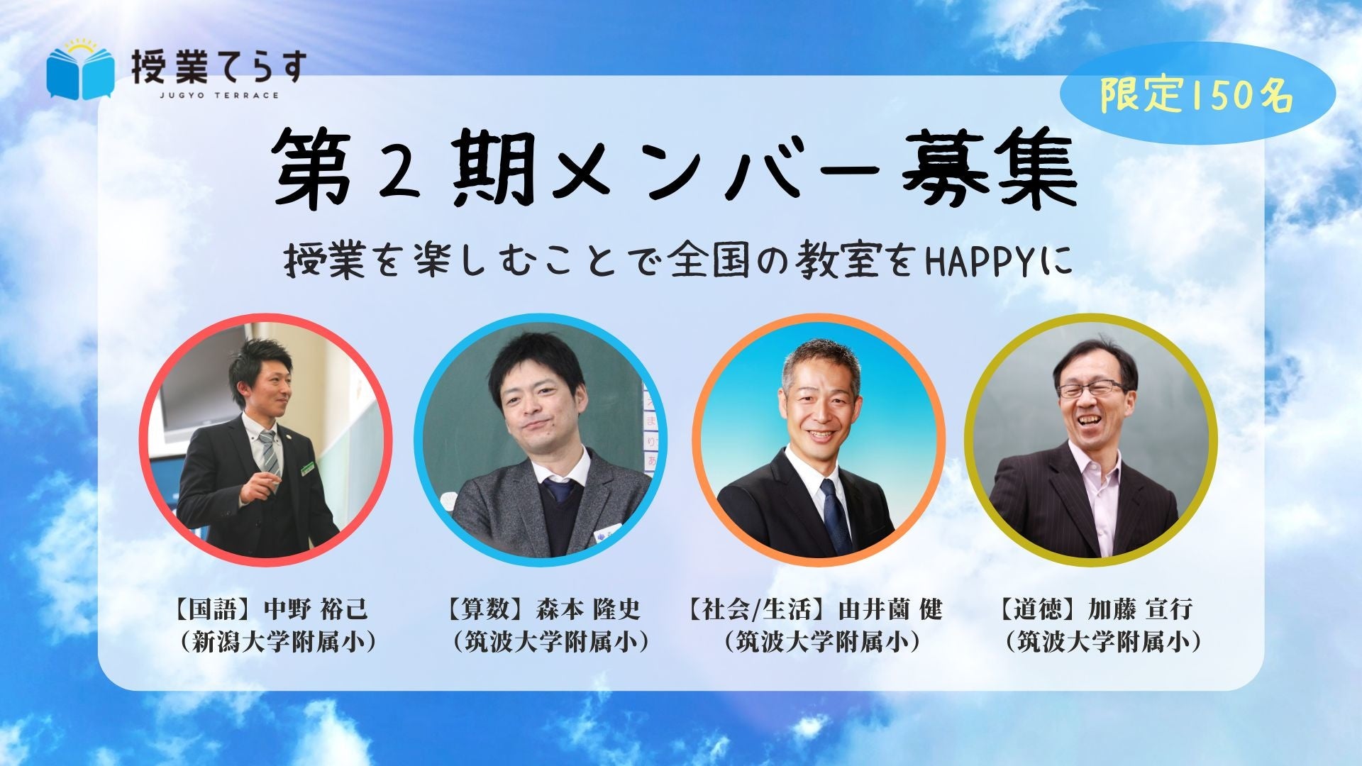 授業てらすは第2期メンバー150名の募集を8月3日に開始します。募集期間は8月31日迄、150名の定員が埋まり次第終了となります。