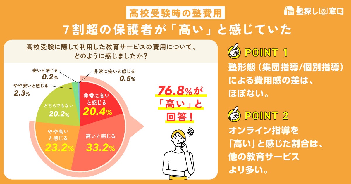 7割の保護者が「塾の費用を高い」と感じる結果に。塾の形態別に費用感を分析すると…?