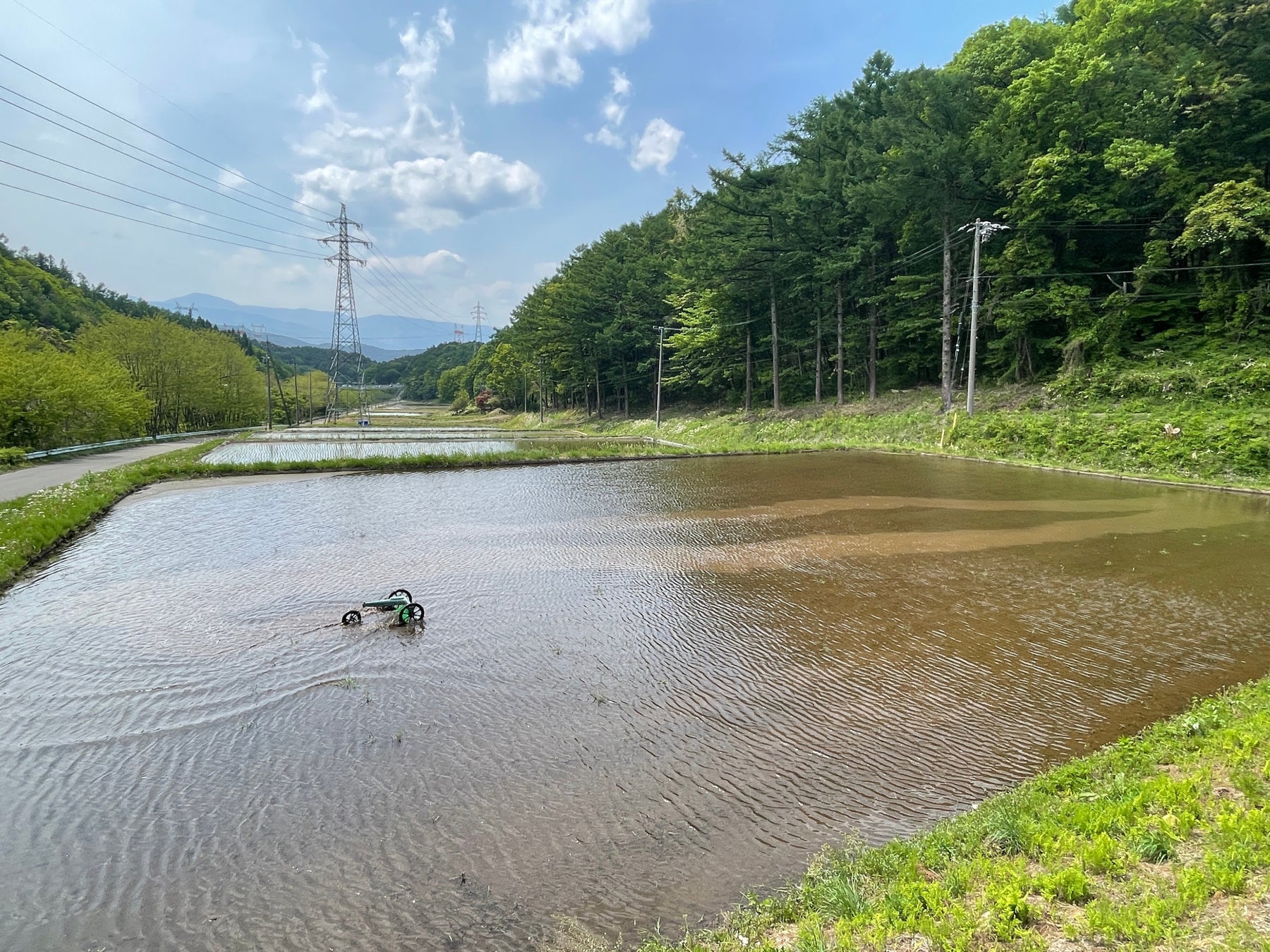 飯山市は、冬は大雪に閉ざされる豪雪地帯の関田山脈の麓・新潟県境に位置します。春の融雪水はミネラル豊富で、一番にかかる地域です。これまでも田んぼの除草に合鴨・アヒルなどの生物除草も行うなど、自然栽培をしていたものの、排泄物が食味に若干影響を与えていました。純粋な除草方法を模索されていた中でミズニゴールと出会い、今回のコラボに致りました。