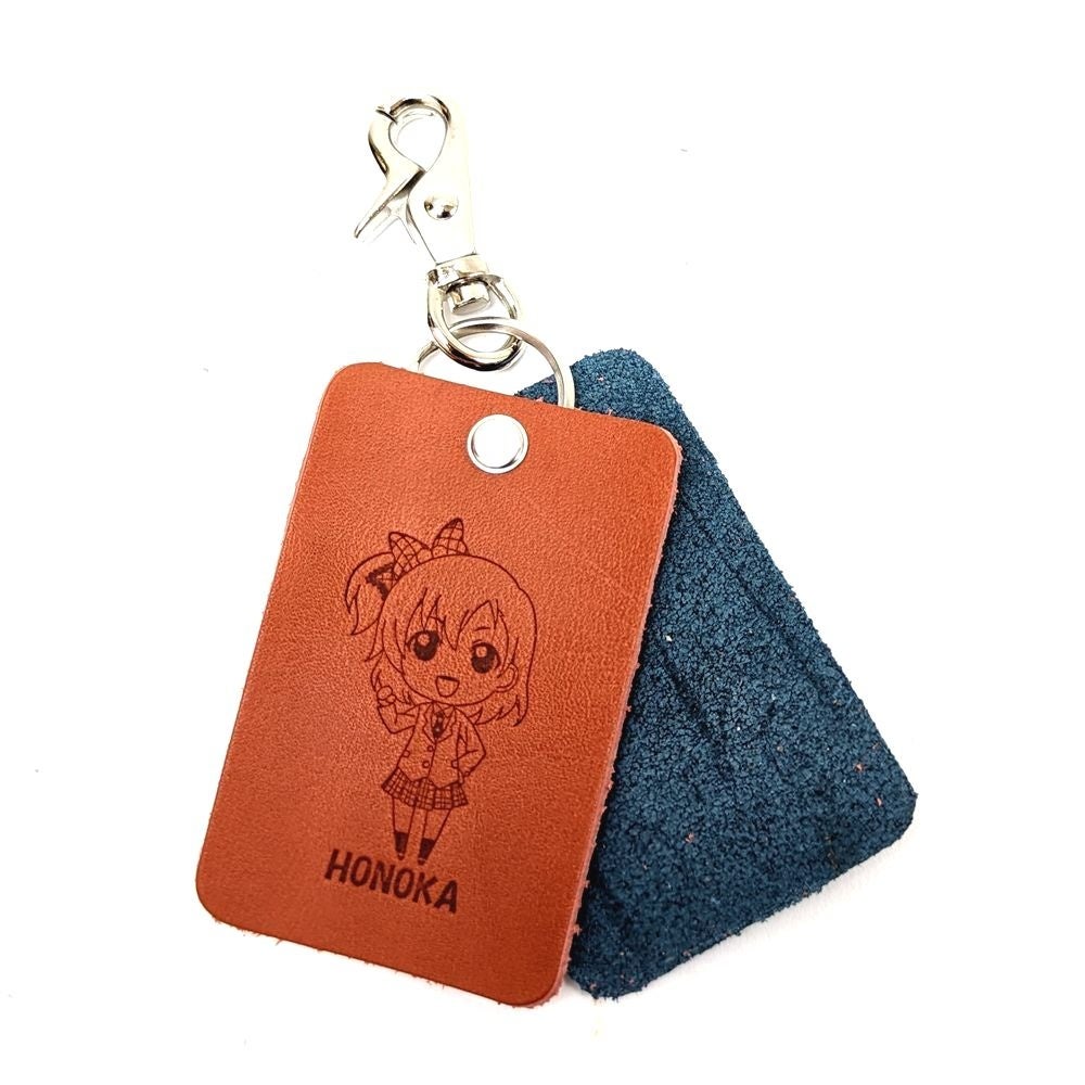 表面にμ'sロゴ、背面には各メンバーアイコンの刻印を入れたレザーキーホルダー。