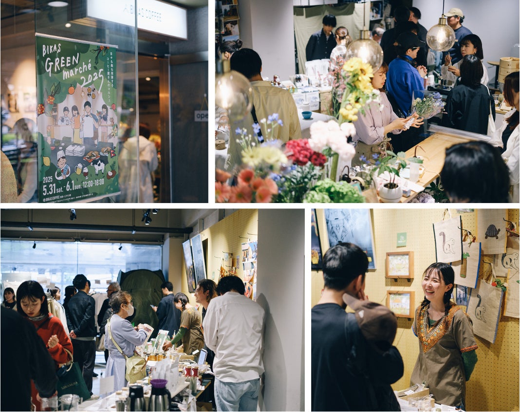 BIKAS GREEN marchéは、コーヒー植樹プロジェクトに賛同する個人と企業が集結し、食やアパレル、日用雑貨などの幅広い商品を販売することで日々も森も発展させる、コーヒー屋さんのマルシェです。2025年5月31日-6月1日にはBIKAS COFFEE東京・江戸川橋の実店舗にて合計24ブランドの出店者様が集結するマルシェを開催し、二日間で300人に及ぶ方々にご来場いただき盛況のうちに終了しました。売上の一部は植樹プロジェクトに還元させて頂きました。