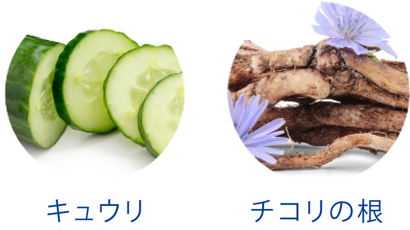 ・キュウリ*1、チコリの根に含まれるオリゴ糖*2や、南アメリカ原産の植物タラ*3など、さまざまな植物由来成分により潤いのある透明感に満ちたお肌へ