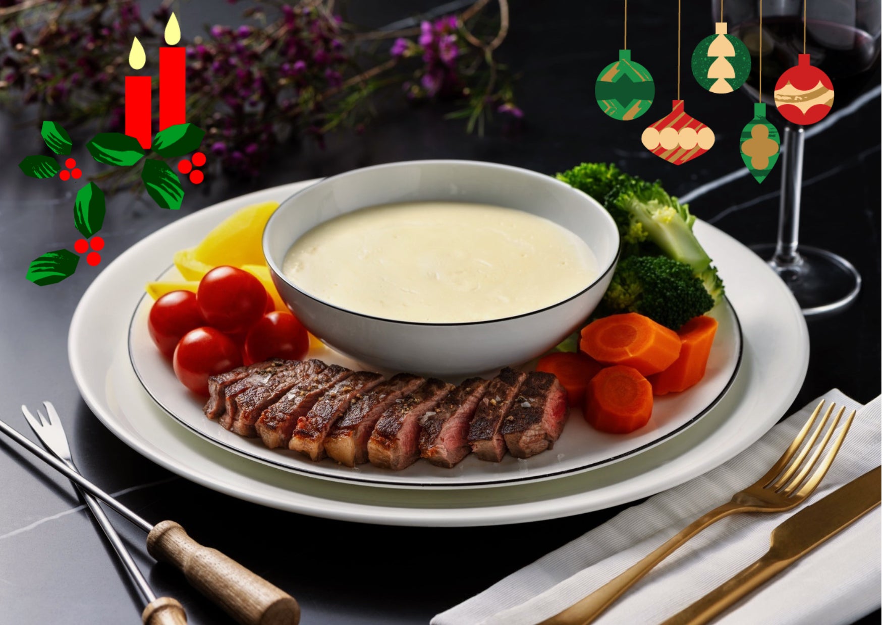 世界中の味を気軽に楽しめるHelloFreshのミールキット定期宅配サービスは、日本でのサービス開始後第一弾となる2022年のクリスマスメニューとして、『主役は国産牛のランイチステーキ!ベシャメルチーズフォンデュ』を12月18日週のメニューに加えました。ステーキにはスーパーマーケットなどの店頭には並ぶことのない「ランイチ」と呼ばれる希少な部位を使用。国産牛の中でも赤身とサシのバランスが良く、お肉本来の旨味と柔らかさが味わえるランイチステーキをラクレットチーズに絡めて食べる、濃厚な味わいの一皿です。