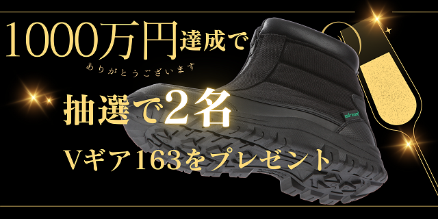 ▶1000万円達成で防水ブーツVギア163を購入者の中から抽選で2名にプレゼント