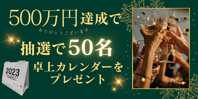 ▶500万円達成で卓上カレンダー(and・moreオリジナル)を購入者の中から抽選で50名にプレゼント