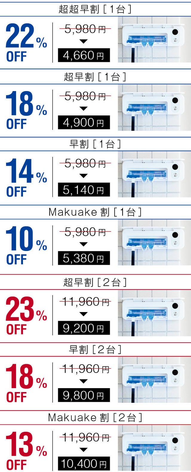 ・マクアケ割1台:5,980円から10%割引の5,380円