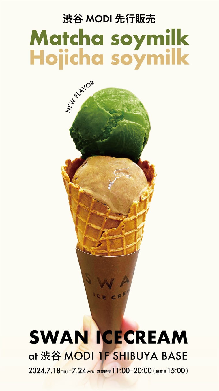 ヘルシーながらも濃厚でリッチな味わいと口溶けが特徴のSWAN ICECREAMから、新フレーバーの「抹茶ソイミルク」と「ほうじ茶ソイミルク」の2種類が登場。7/18(木)~7/24(水)に渋谷モディの期間限定ショップで先行販売いたします。